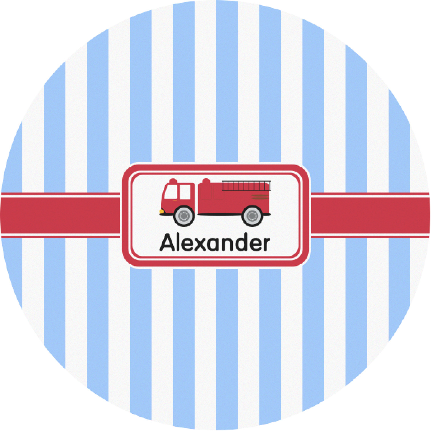 What little boy doesn't dream about growing up and becoming a fire fighter? Set on a classic striped blue and white background, this design featuring a snazzy firetruck is perfect for your little fireman-to-be.