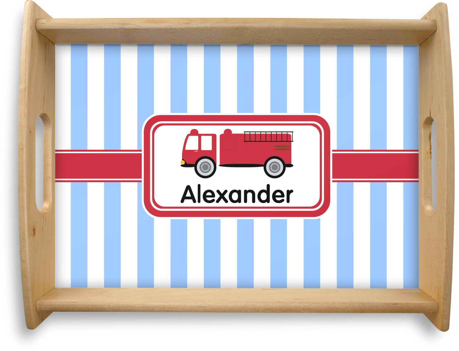 What little boy doesn't dream about growing up and becoming a fire fighter? Set on a classic striped blue and white background, this design featuring a snazzy firetruck is perfect for your little fireman-to-be.