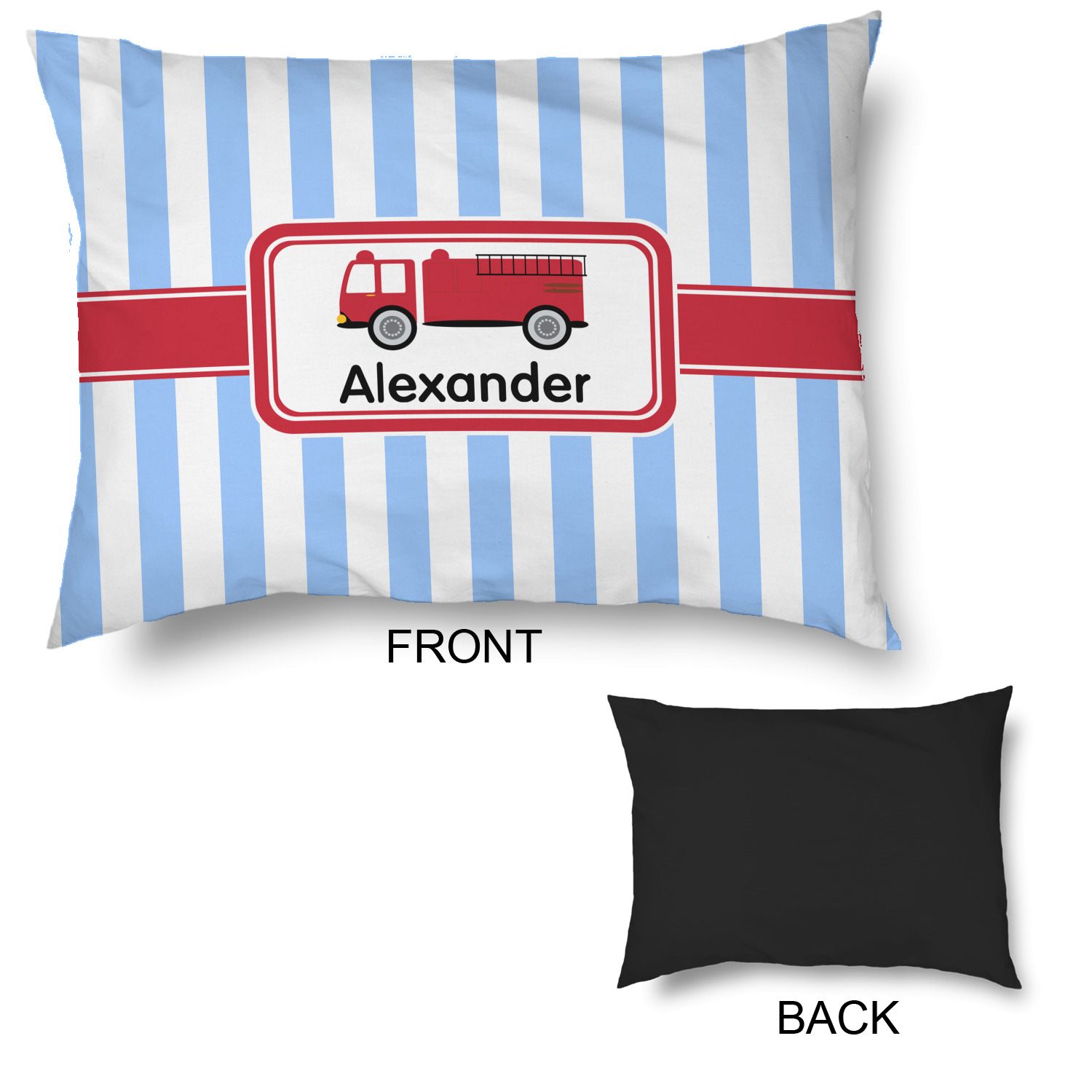 What little boy doesn't dream about growing up and becoming a fire fighter? Set on a classic striped blue and white background, this design featuring a snazzy firetruck is perfect for your little fireman-to-be.