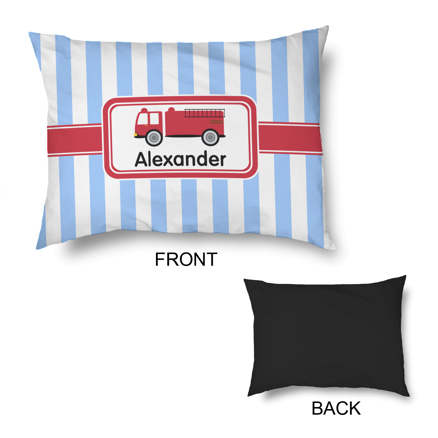 What little boy doesn't dream about growing up and becoming a fire fighter? Set on a classic striped blue and white background, this design featuring a snazzy firetruck is perfect for your little fireman-to-be.