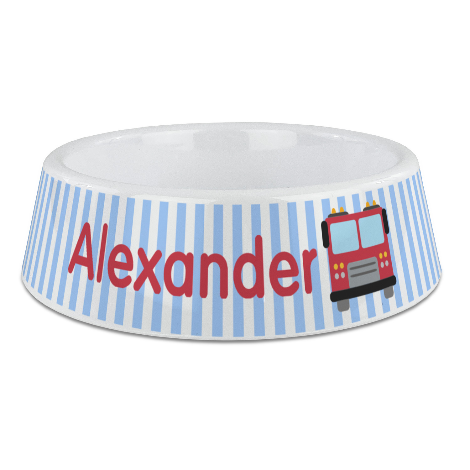 What little boy doesn't dream about growing up and becoming a fire fighter? Set on a classic striped blue and white background, this design featuring a snazzy firetruck is perfect for your little fireman-to-be.
