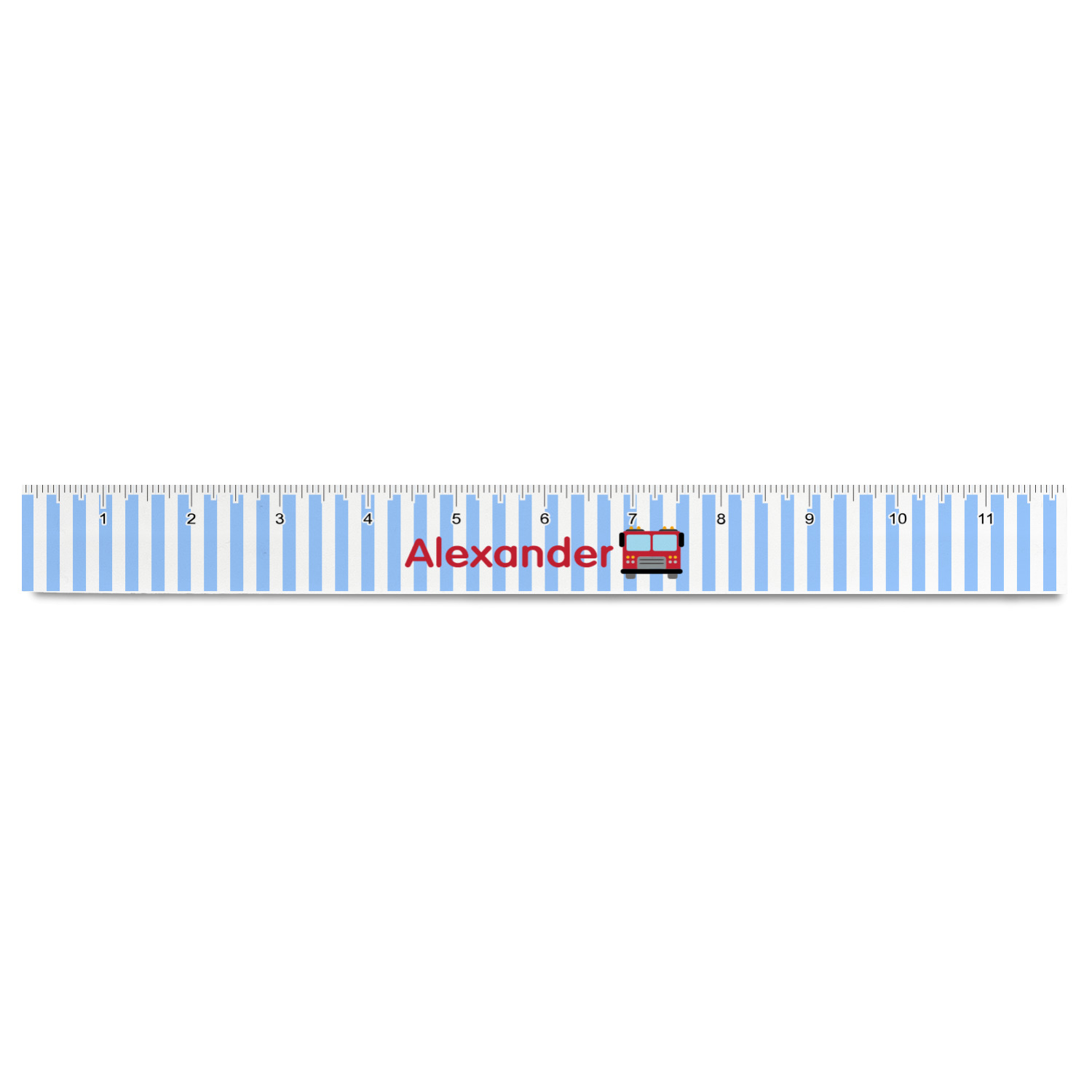 What little boy doesn't dream about growing up and becoming a fire fighter? Set on a classic striped blue and white background, this design featuring a snazzy firetruck is perfect for your little fireman-to-be.