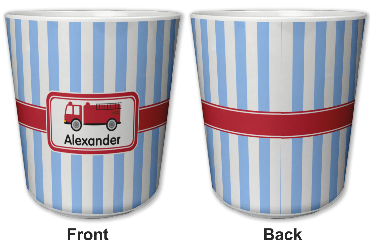 Made from a durable plastic, these tumbler cups are strong enough to withstand daily use and are perfect for young children. Each of these personalized plastic cups holds 6 ounces and measure at approximately 3" x 3" x 3.25". Place them in the bathroom as a rinsing cup, or give them to your kids during mealtimes. These 6 oz. plastic cups are BPA free, microwave and dishwasher safe, for your convenience. Your personalized design is displayed across the entire outside of this cup, while the inside is white in color to make your customization really stand out.