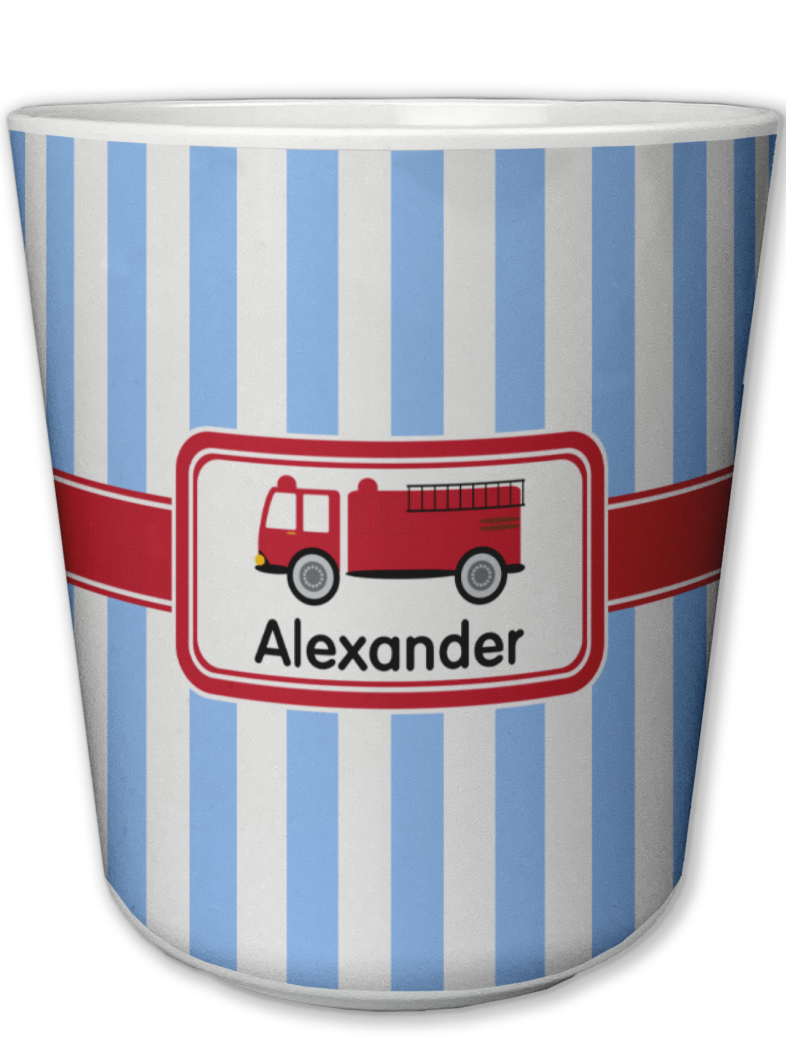 What little boy doesn't dream about growing up and becoming a fire fighter? Set on a classic striped blue and white background, this design featuring a snazzy firetruck is perfect for your little fireman-to-be.