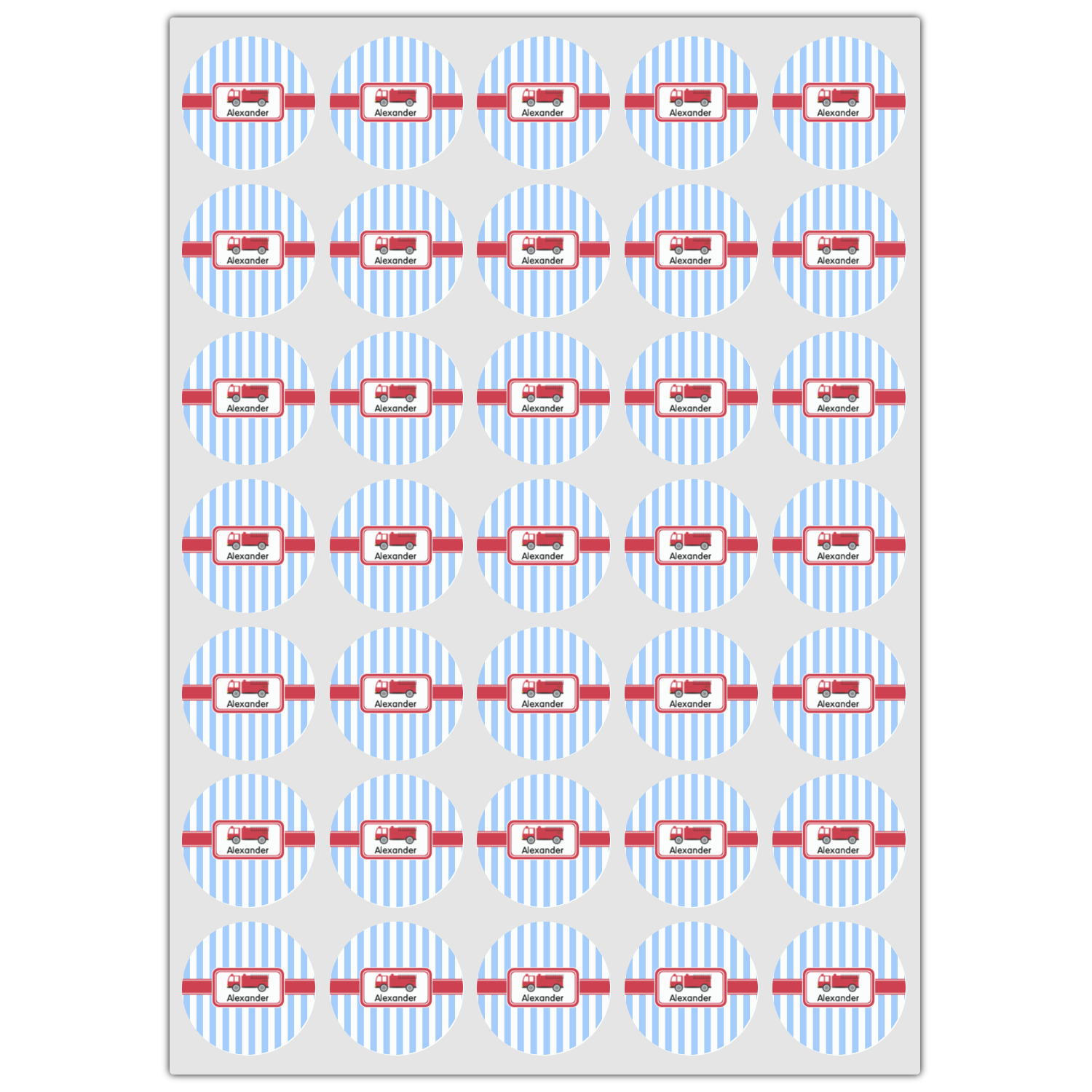 What little boy doesn't dream about growing up and becoming a fire fighter? Set on a classic striped blue and white background, this design featuring a snazzy firetruck is perfect for your little fireman-to-be.