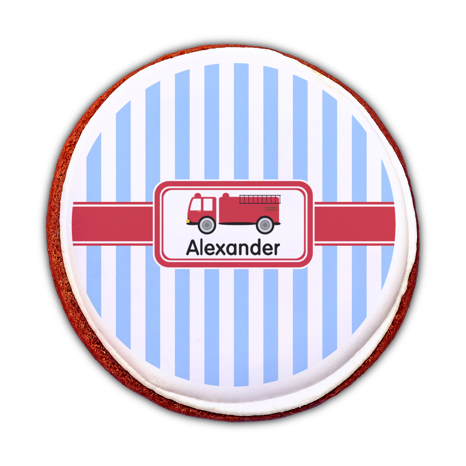 What little boy doesn't dream about growing up and becoming a fire fighter? Set on a classic striped blue and white background, this design featuring a snazzy firetruck is perfect for your little fireman-to-be.