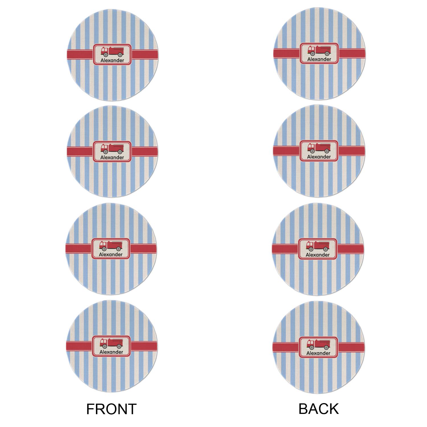 What little boy doesn't dream about growing up and becoming a fire fighter? Set on a classic striped blue and white background, this design featuring a snazzy firetruck is perfect for your little fireman-to-be.