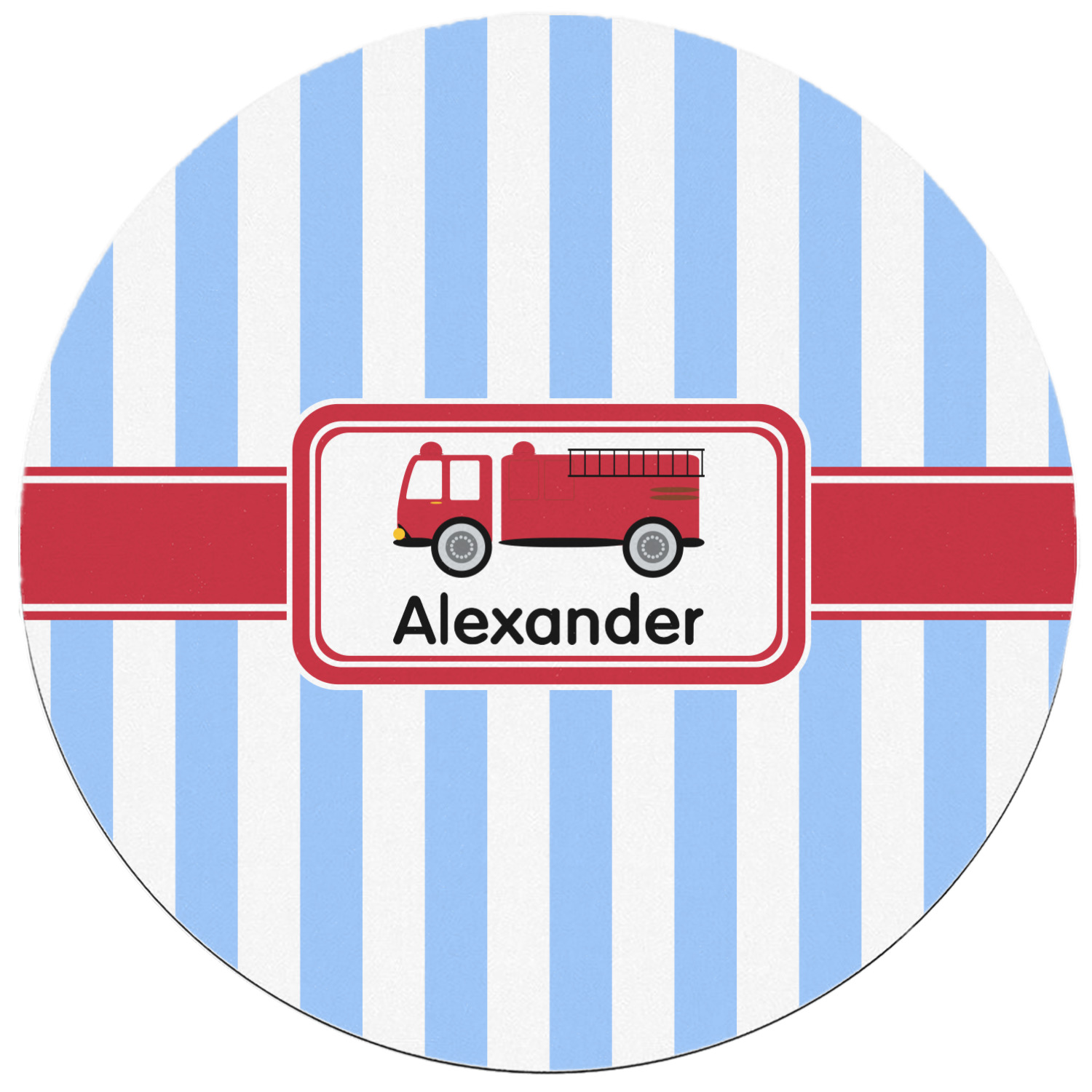 What little boy doesn't dream about growing up and becoming a fire fighter? Set on a classic striped blue and white background, this design featuring a snazzy firetruck is perfect for your little fireman-to-be.
