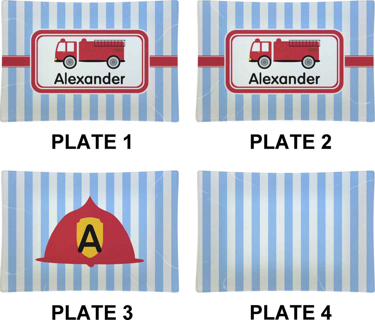 What little boy doesn't dream about growing up and becoming a fire fighter? Set on a classic striped blue and white background, this design featuring a snazzy firetruck is perfect for your little fireman-to-be.