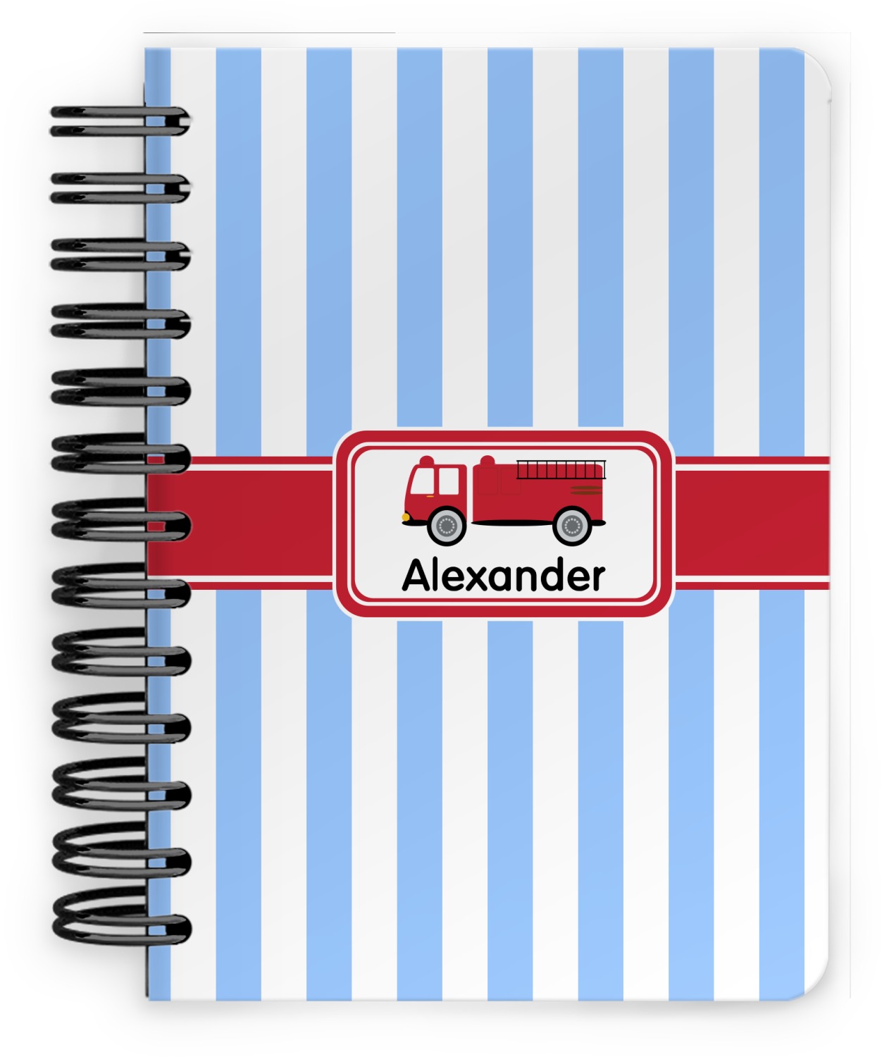 This spiral notebook includes 75 sheets of thick, ruled paper. The front and back of this custom notebook is made of a robust, laminate, plastic covering. We print your personalization on these two panels, underneath a glossy finish, which emphasizes the colors of your design. The two panels and the sheets of paper are held together by a sturdy, black coil. The paper within your bound notebook is perforated for easy, clean tearing.