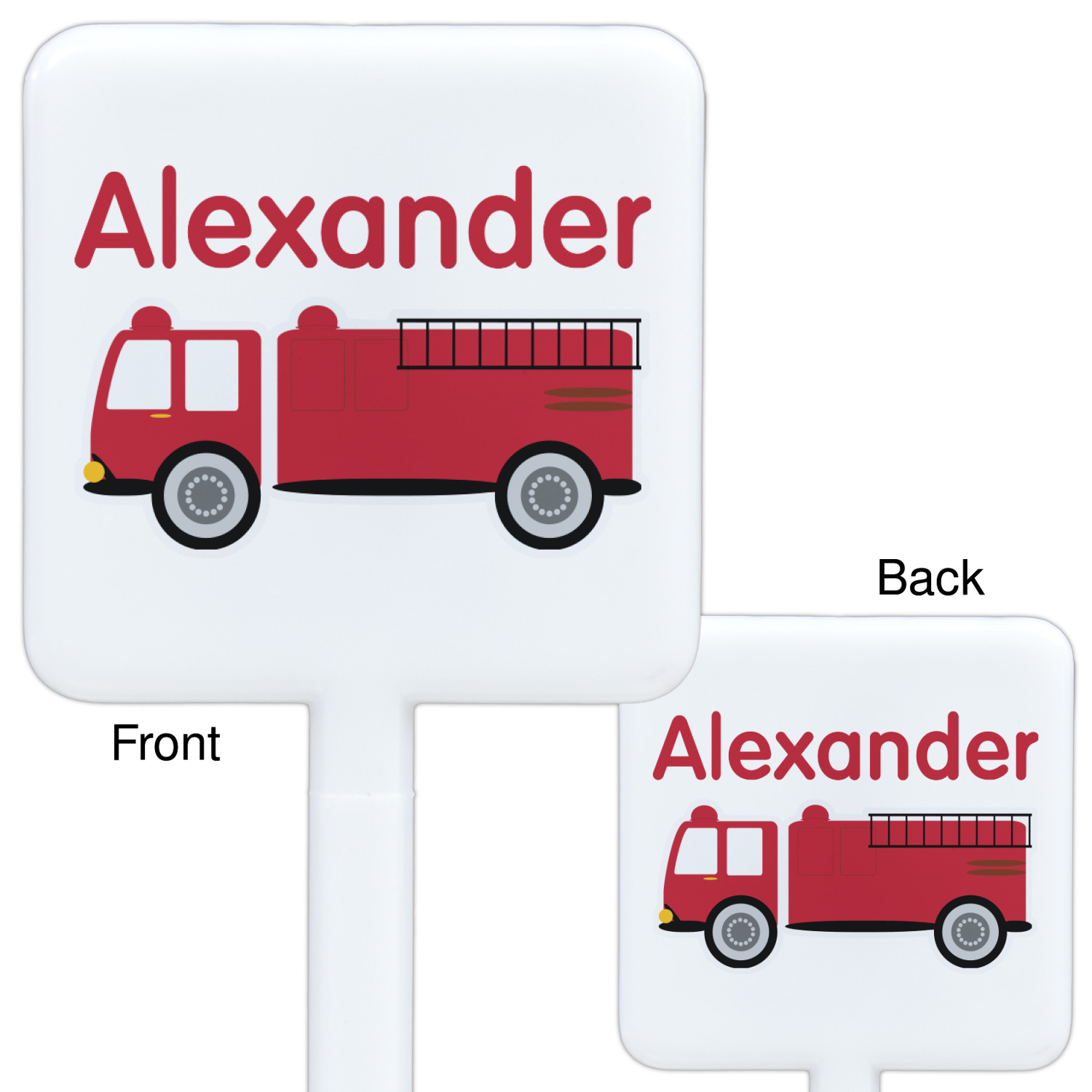 What little boy doesn't dream about growing up and becoming a fire fighter? Set on a classic striped blue and white background, this design featuring a snazzy firetruck is perfect for your little fireman-to-be.