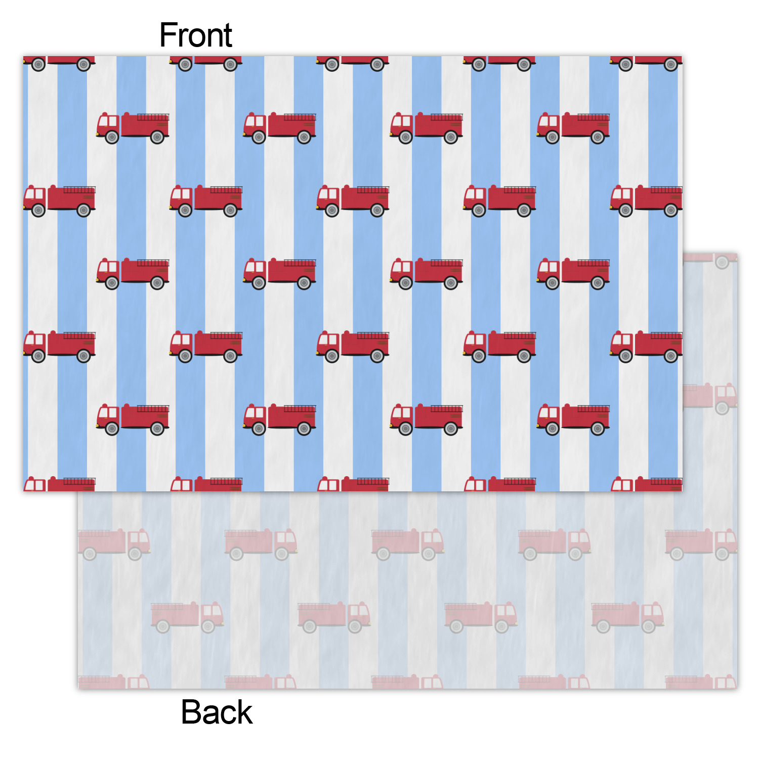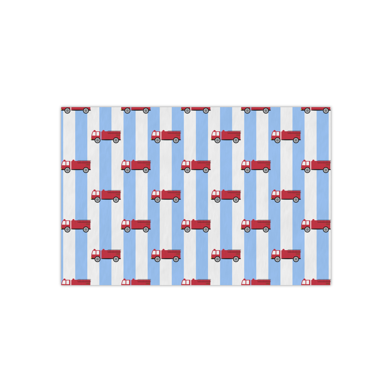 What little boy doesn't dream about growing up and becoming a fire fighter? Set on a classic striped blue and white background, this design featuring a snazzy firetruck is perfect for your little fireman-to-be.