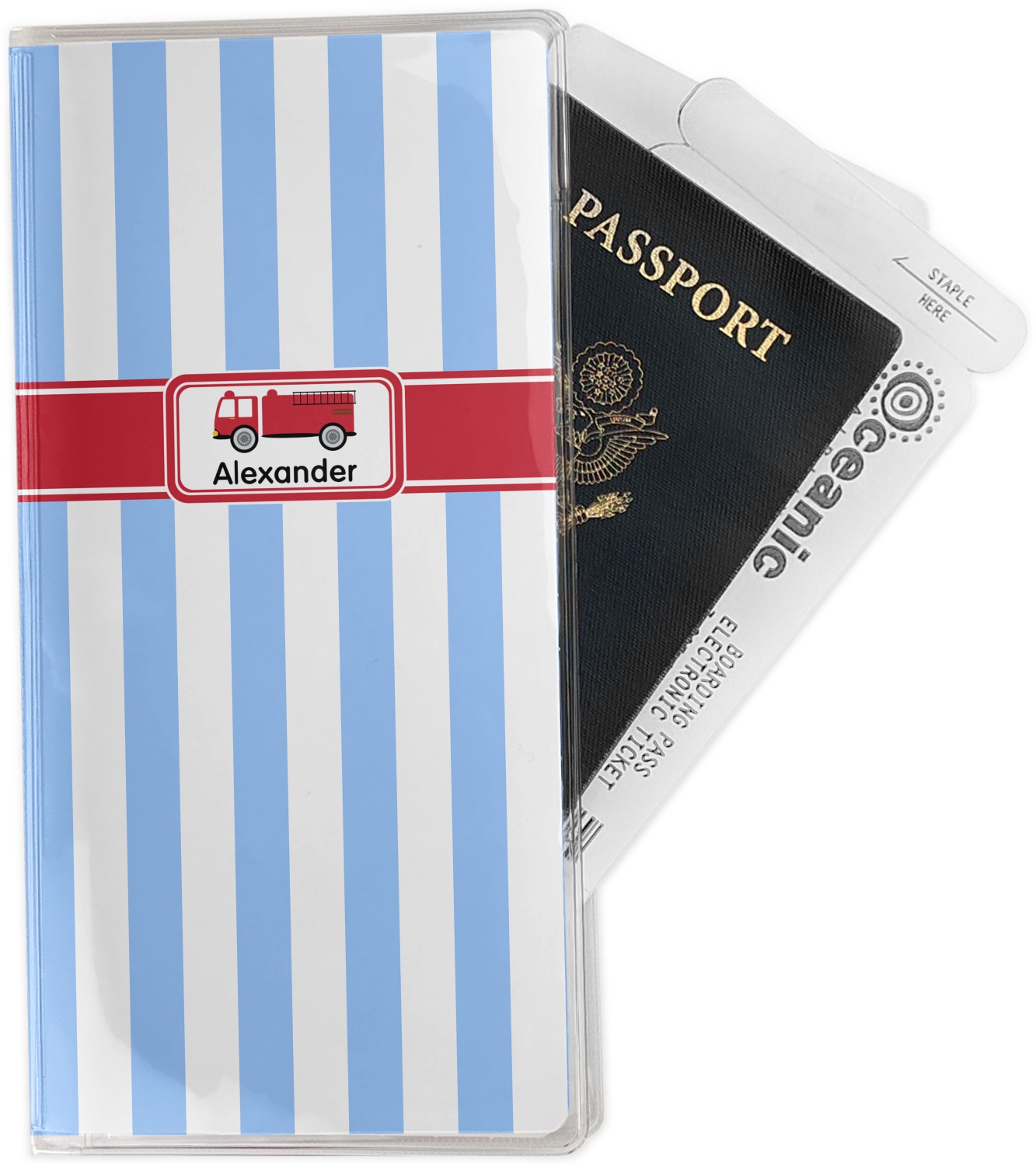 This document holder is really sturdy and has your personalized design inserted right behind all of your nifty pockets, so you can see it on the front and back covers. There are two large pockets and two shorter pockets inside. The larger pockets are tall enough to keep your boarding pass nice and straight. The smaller pockets (on top of the large pockets) are large enough to fit your passport, credit card, or ID.