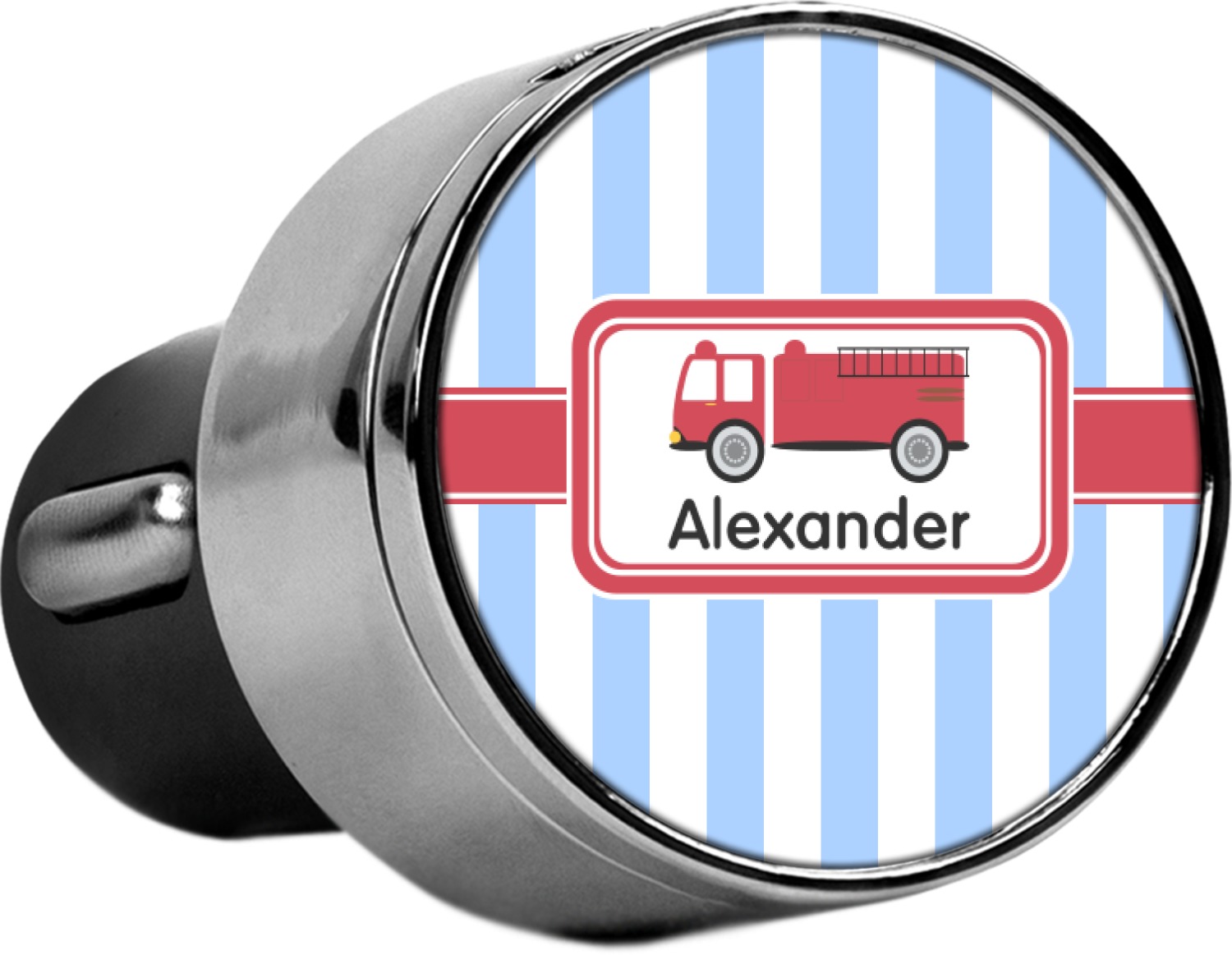 This car charger adapter converts your cars bland cigarette lighter into a decorative, personalized, and operational USB charging port. Made of solid, silver-plated metal, these chargers feature a flip-open lid that both displays your customized design and conceals two USB ports. The metal lid of the USB car charger adapter is 1.5" in diameter and seals due to a small, ingrained magnet on both the charger and its lid. The cigarette lighter insert, itself, is colored black.
