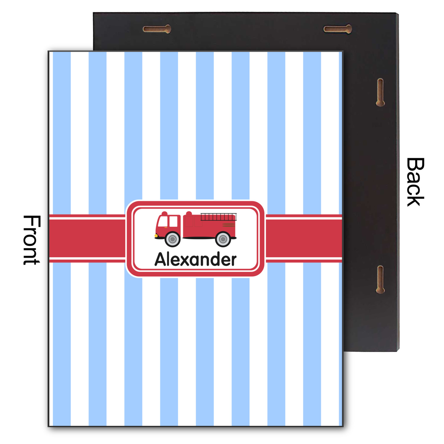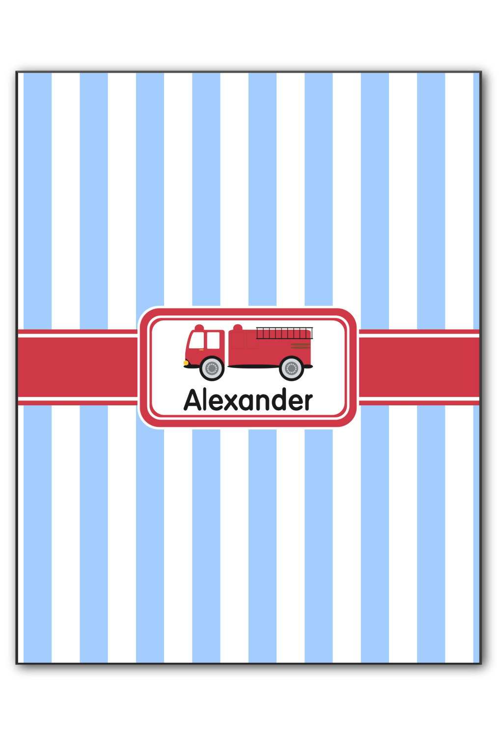 What little boy doesn't dream about growing up and becoming a fire fighter? Set on a classic striped blue and white background, this design featuring a snazzy firetruck is perfect for your little fireman-to-be.