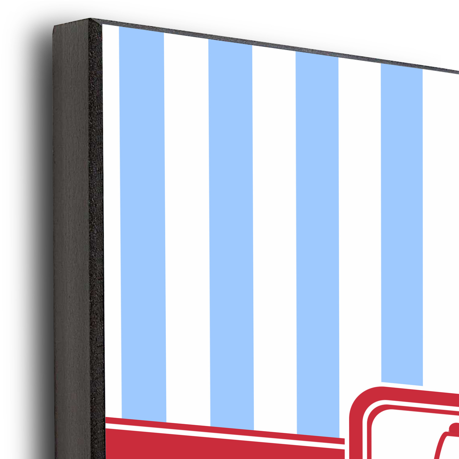 Your image is digitally printed in full color directly on the white panel, resulting in a vibrant print on wood.