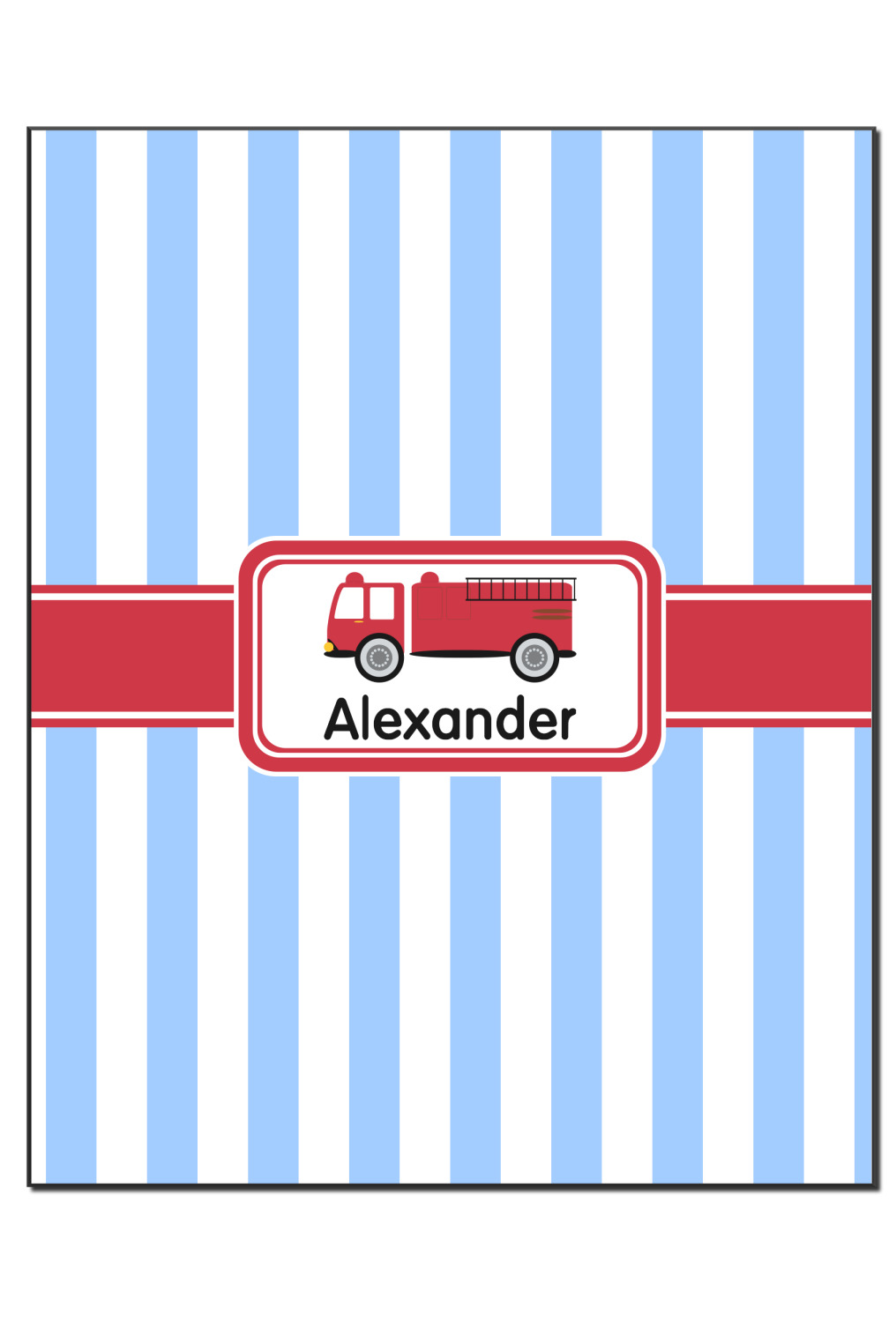 What little boy doesn't dream about growing up and becoming a fire fighter? Set on a classic striped blue and white background, this design featuring a snazzy firetruck is perfect for your little fireman-to-be.
