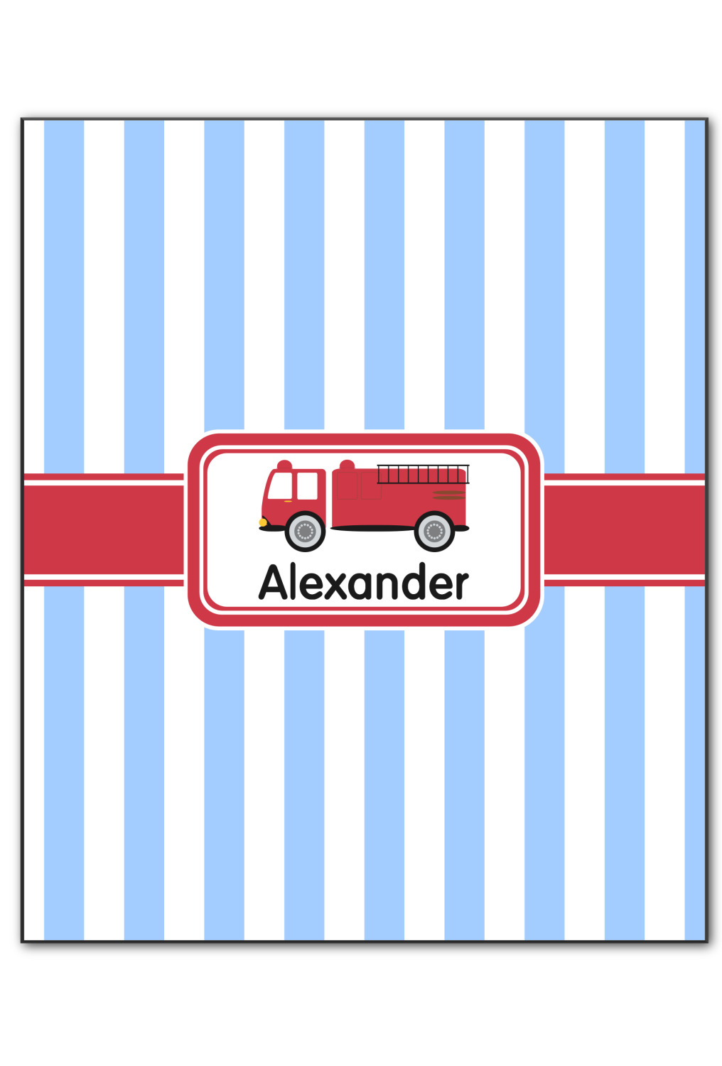 What little boy doesn't dream about growing up and becoming a fire fighter? Set on a classic striped blue and white background, this design featuring a snazzy firetruck is perfect for your little fireman-to-be.