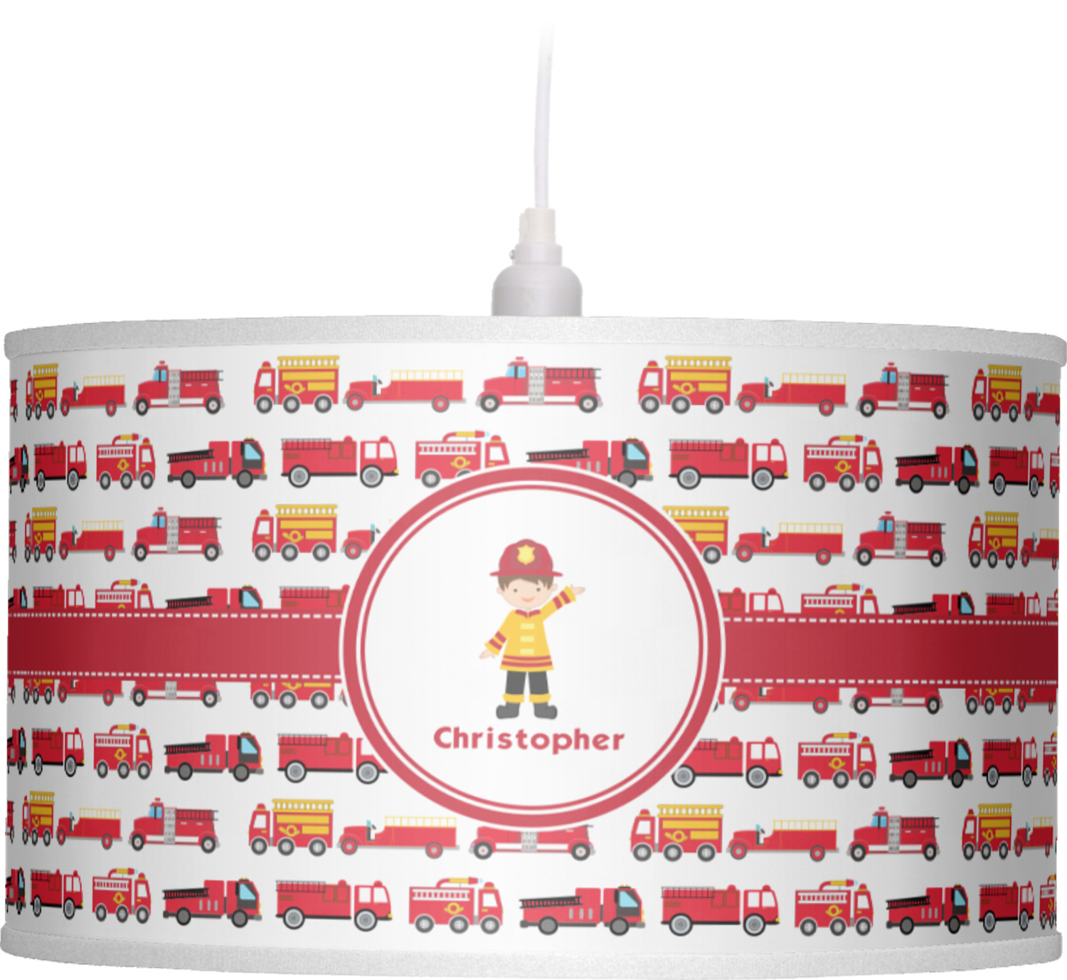 These pendant lampshades are in a cylindrical, drum shape. Available in 2 sizes - 16 inch diameter and a height of 10 inches or 12 inch diameter with a height of 8 inches, this lantern pendant light will not go unnoticed in your home. The interior of this light shade is made of flexible, smooth plastic, and the base color of the lamp is white. Your personalization is displayed on the exterior of this custom lampshade. The fabric shades the fabric fully wraps the ring for a sleek look. Your purchase includes a 12 foot long cord that has a convenient on and off switch attached, the cord is black in color with a tasteful cloth covering over the cord to add the sophisticated look to this light fixture. This lamp can fit a 60 or 75 watt light bulb, but the bulb is not included. Please scroll through the images above to learn more about the structure and shaping of this lamp compared to the other ones we offer.