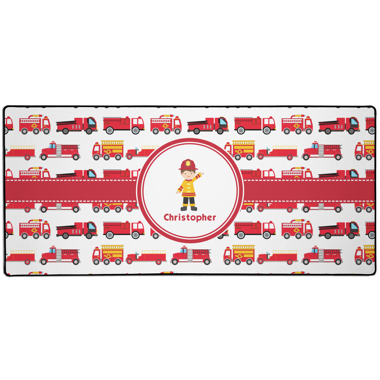 What little boy doesn't dream about growing up and becoming a fire fighter? Open his imagination with this adorable design showing your little man dressed to the nines and ready to save some lives, with a whole fleet of fire trucks behind him.