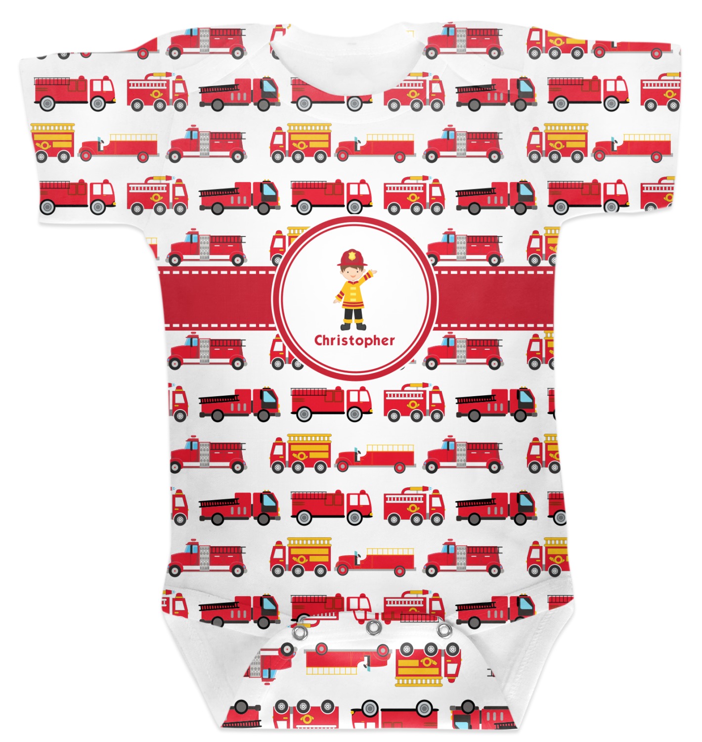 What little boy doesn't dream about growing up and becoming a fire fighter? Open his imagination with this adorable design showing your little man dressed to the nines and ready to save some lives, with a whole fleet of fire trucks behind him.