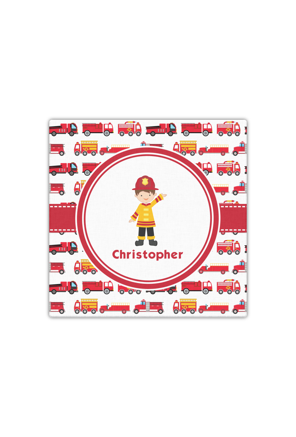 What little boy doesn't dream about growing up and becoming a fire fighter? Open his imagination with this adorable design showing your little man dressed to the nines and ready to save some lives, with a whole fleet of fire trucks behind him.