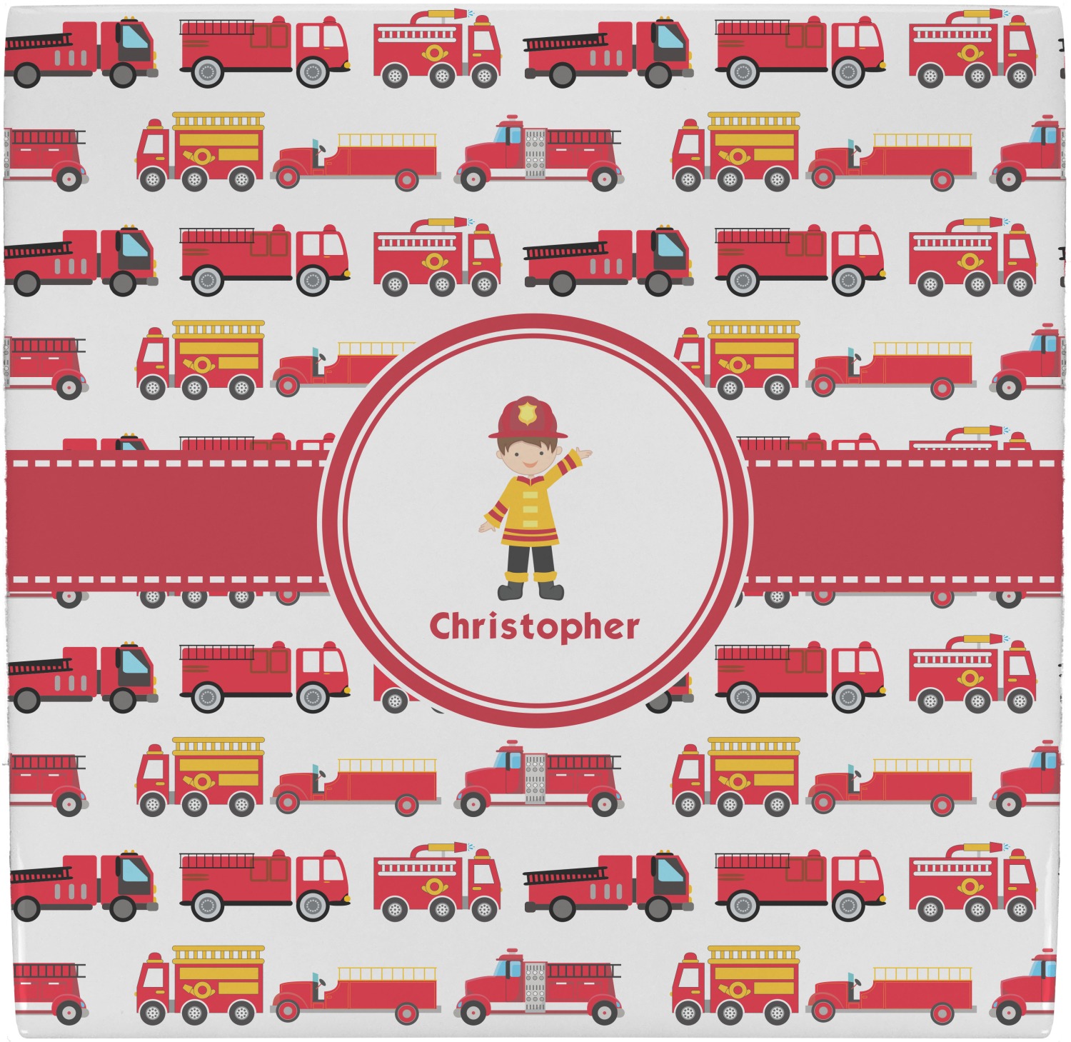 What little boy doesn't dream about growing up and becoming a fire fighter? Open his imagination with this adorable design showing your little man dressed to the nines and ready to save some lives, with a whole fleet of fire trucks behind him.