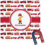 What little boy doesn't dream about growing up and becoming a fire fighter? Open his imagination with this adorable design showing your little man dressed to the nines and ready to save some lives, with a whole fleet of fire trucks behind him.