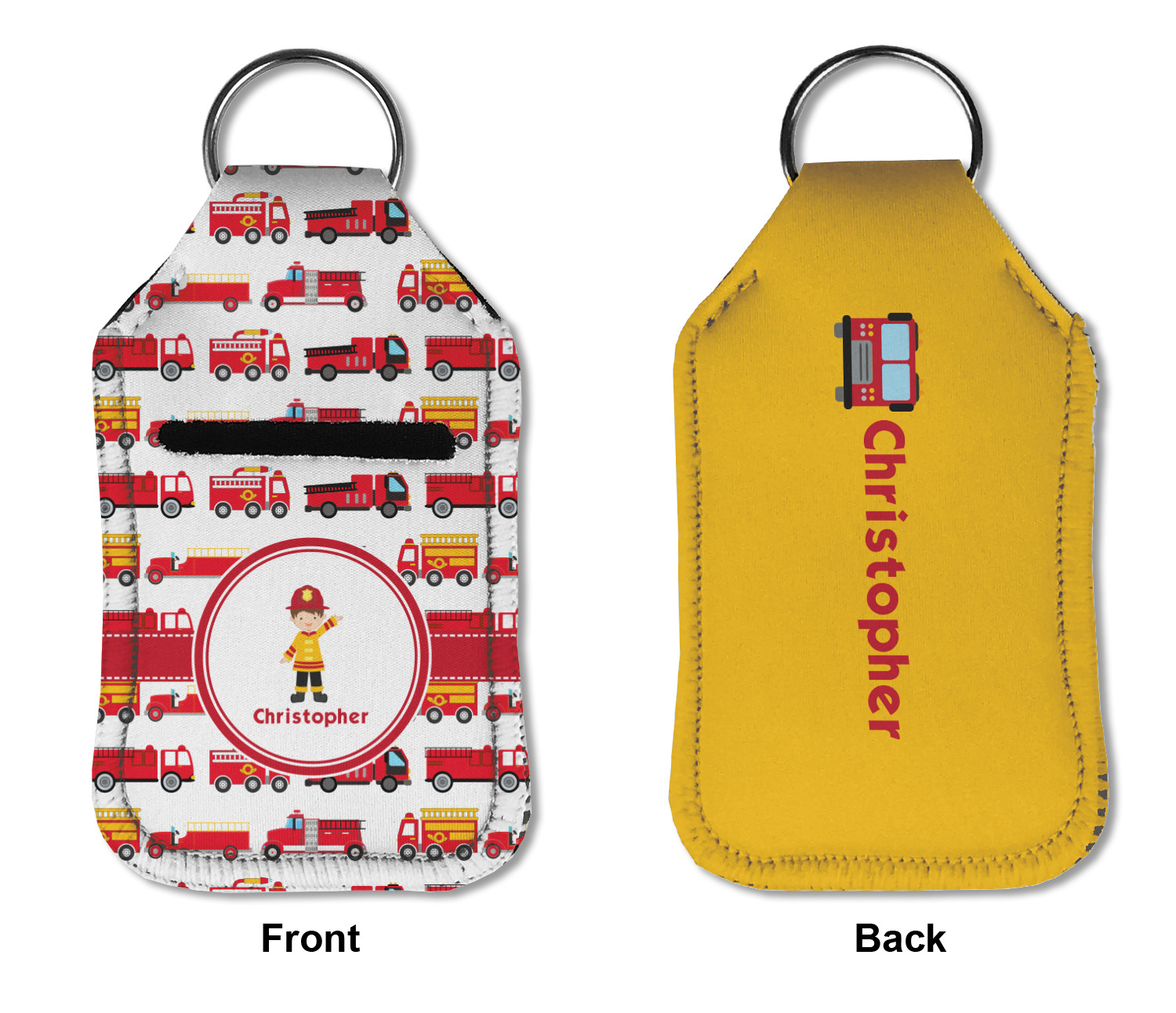 Each hand sanitizer holder comes with its own empty travel-sized, refillable hand sanitizer sure to fit snug in your customized sanitizer case! Our hand sanitizer cases are a durable, yet soft neoprene material sure to last any daily activities or travel agenda. Customize and personalize a hand sanitizer bottle holder with one of our two sizes - small (4.25" x 2.25") or large (5.5" x 2.5"). Each travel sanitizer holder comes with a keyring for attachment on bags, keys, or more!