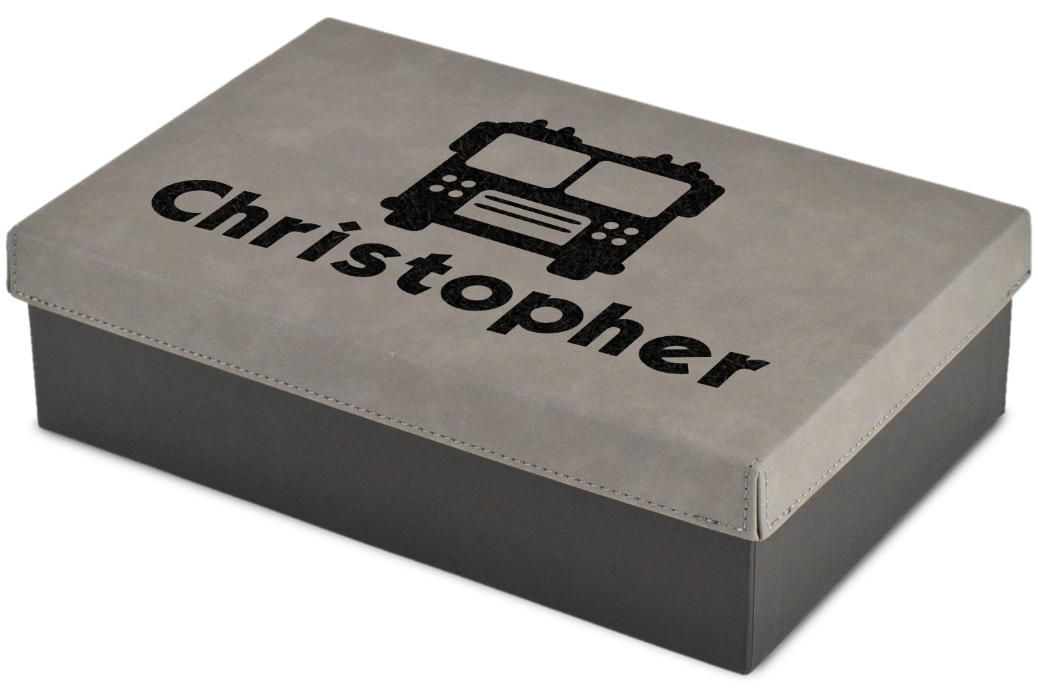 These gift boxes are available in 3 different sizes to accommodate various sized gifts. Available in gray as a neutral color for any occasion as well as to showcase your design boldly. Engraved with a laser this high quality paper board and faux leather gift box is unique and makes any gift stand out.