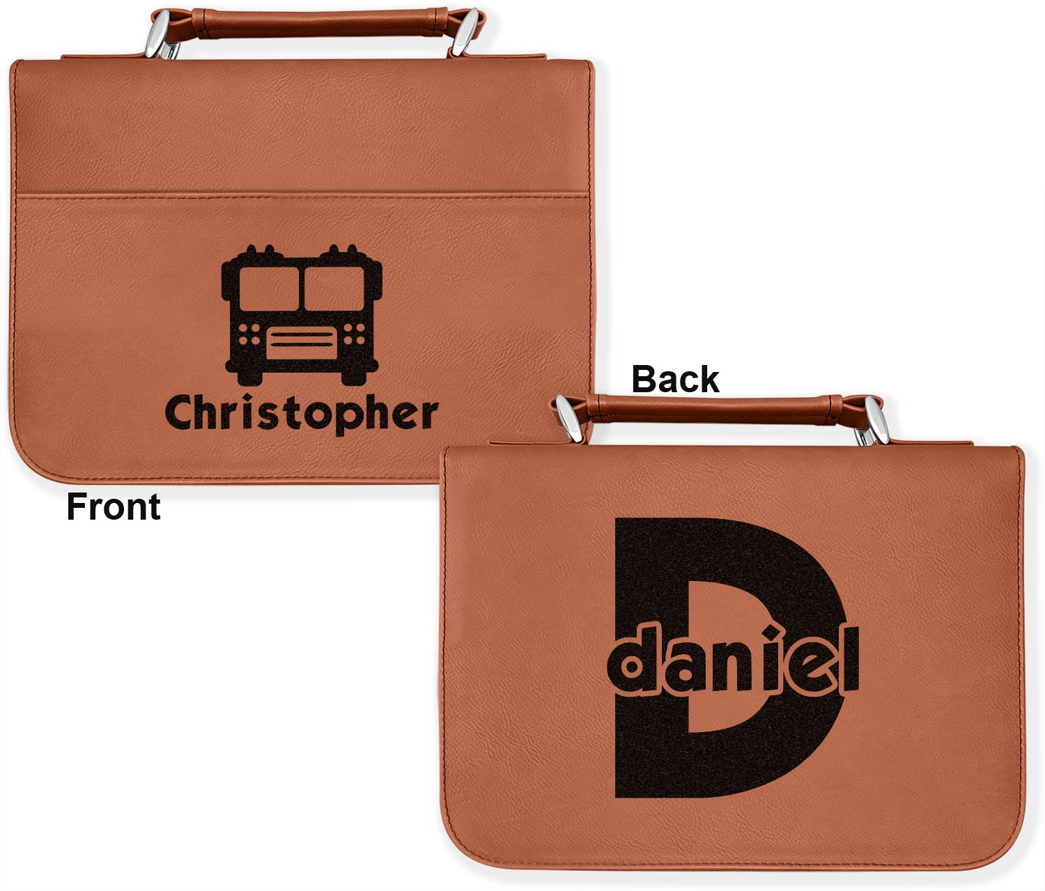 We offer these custom book covers in several variations. First, we offer two different sizes. Our small can accommodate books of up to 8.5" x 6" x 2". The larger size can fit books up to 10" x 7.125" x 2". Both of these sizes can then be customized according to your preference; you can either choose to laser engrave a design on the front and back, or solely the front.