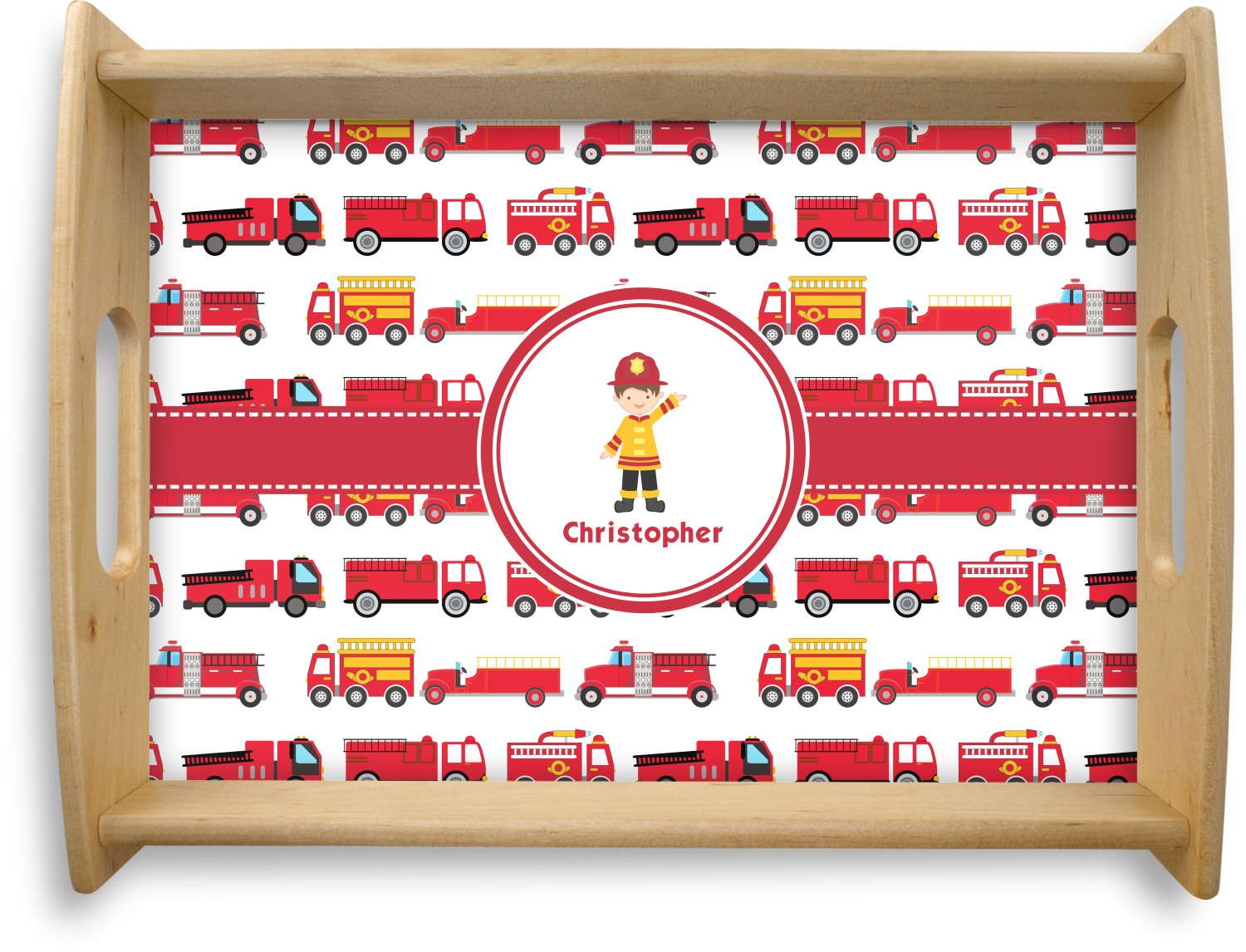 What little boy doesn't dream about growing up and becoming a fire fighter? Open his imagination with this adorable design showing your little man dressed to the nines and ready to save some lives, with a whole fleet of fire trucks behind him.