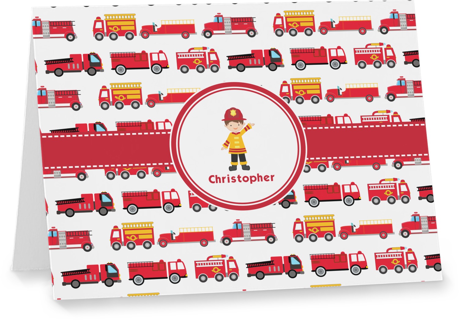 What little boy doesn't dream about growing up and becoming a fire fighter? Open his imagination with this adorable design showing your little man dressed to the nines and ready to save some lives, with a whole fleet of fire trucks behind him.