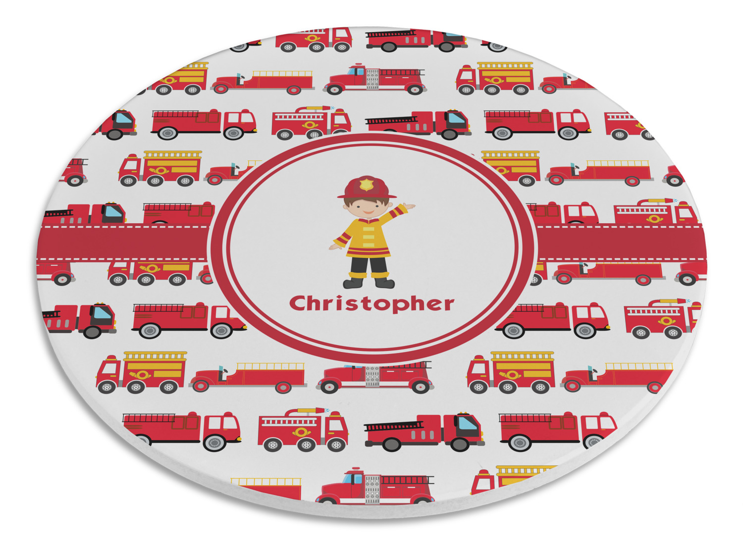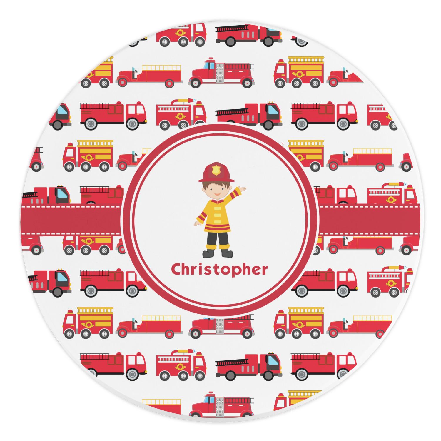 What little boy doesn't dream about growing up and becoming a fire fighter? Open his imagination with this adorable design showing your little man dressed to the nines and ready to save some lives, with a whole fleet of fire trucks behind him.