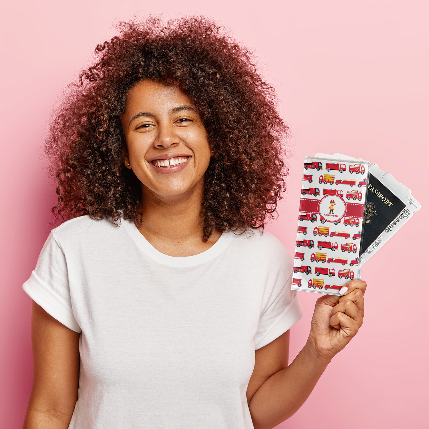 This document holder is really sturdy and has your personalized design inserted right behind all of your nifty pockets, so you can see it on the front and back covers. There are two large pockets and two shorter pockets inside. The larger pockets are tall enough to keep your boarding pass nice and straight. The smaller pockets (on top of the large pockets) are large enough to fit your passport, credit card, or ID.