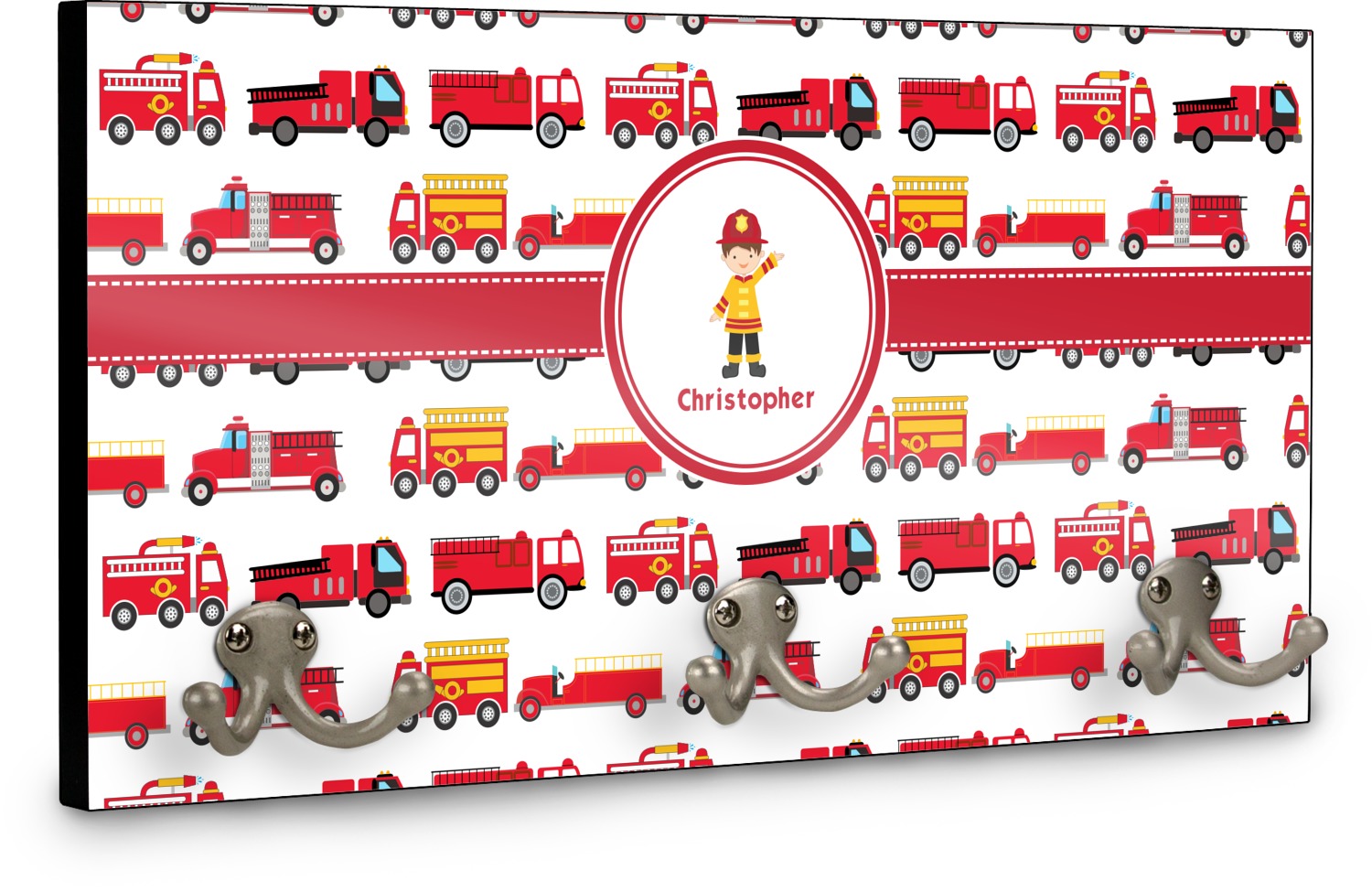 What little boy doesn't dream about growing up and becoming a fire fighter? Open his imagination with this adorable design showing your little man dressed to the nines and ready to save some lives, with a whole fleet of fire trucks behind him.