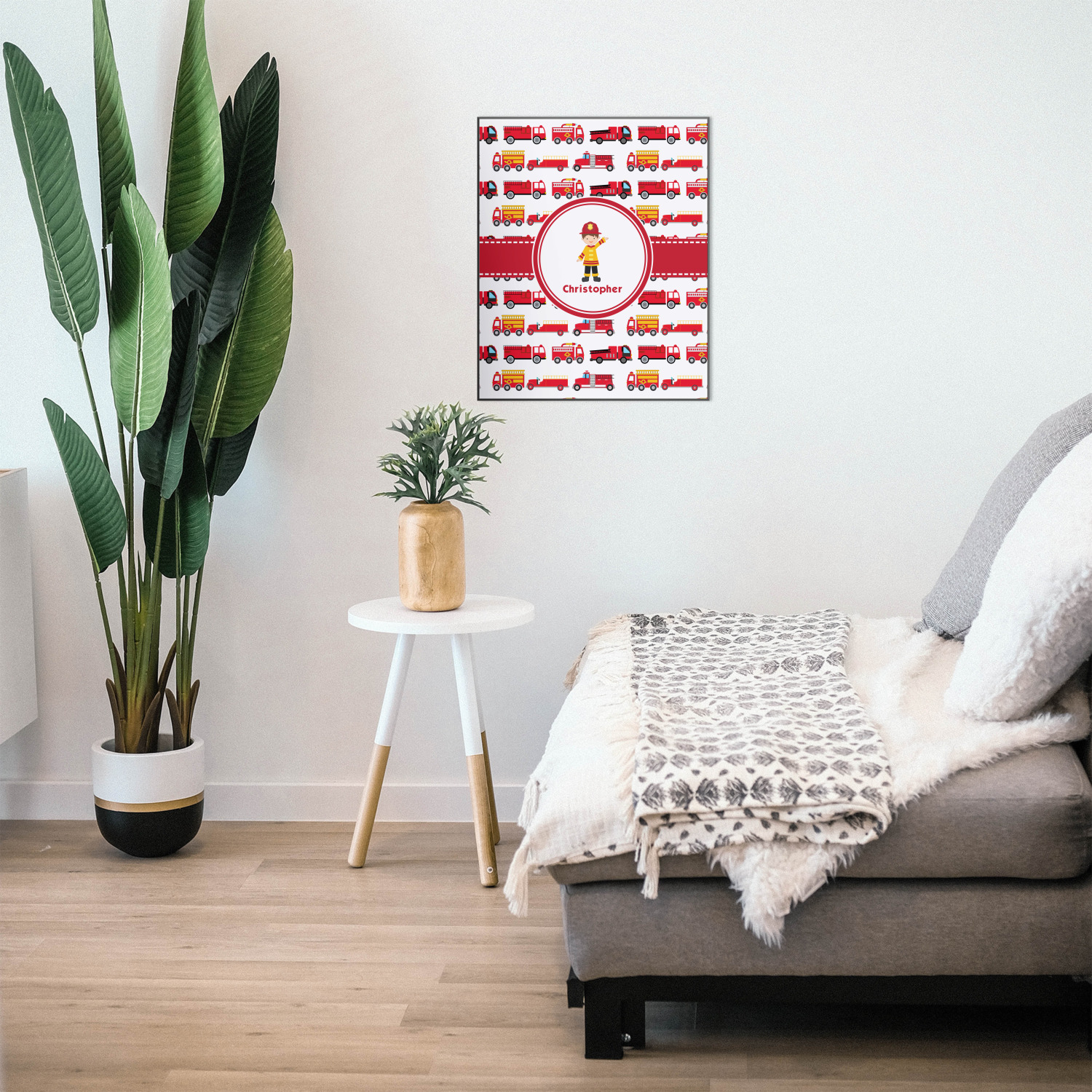 What little boy doesn't dream about growing up and becoming a fire fighter? Open his imagination with this adorable design showing your little man dressed to the nines and ready to save some lives, with a whole fleet of fire trucks behind him.