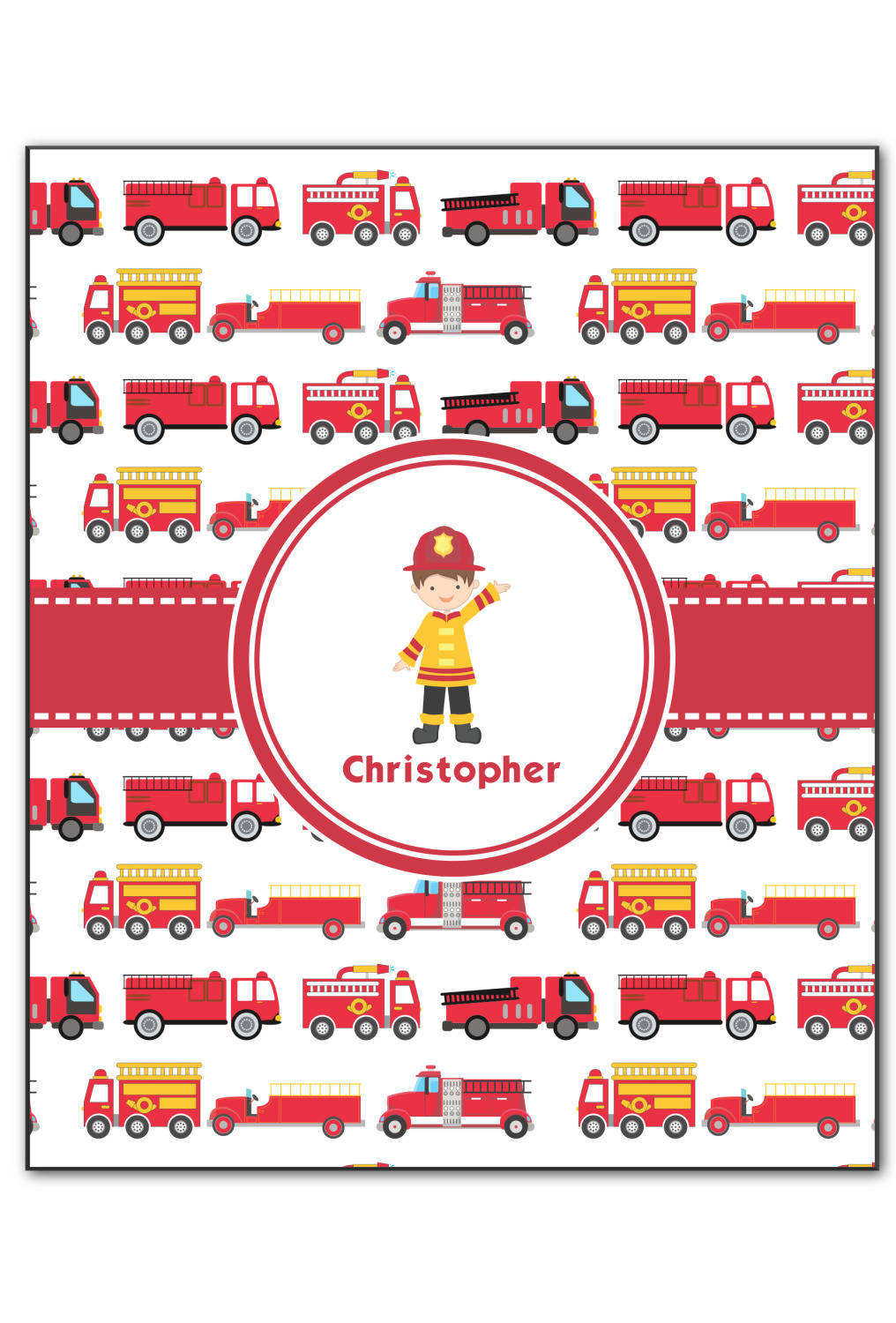What little boy doesn't dream about growing up and becoming a fire fighter? Open his imagination with this adorable design showing your little man dressed to the nines and ready to save some lives, with a whole fleet of fire trucks behind him.