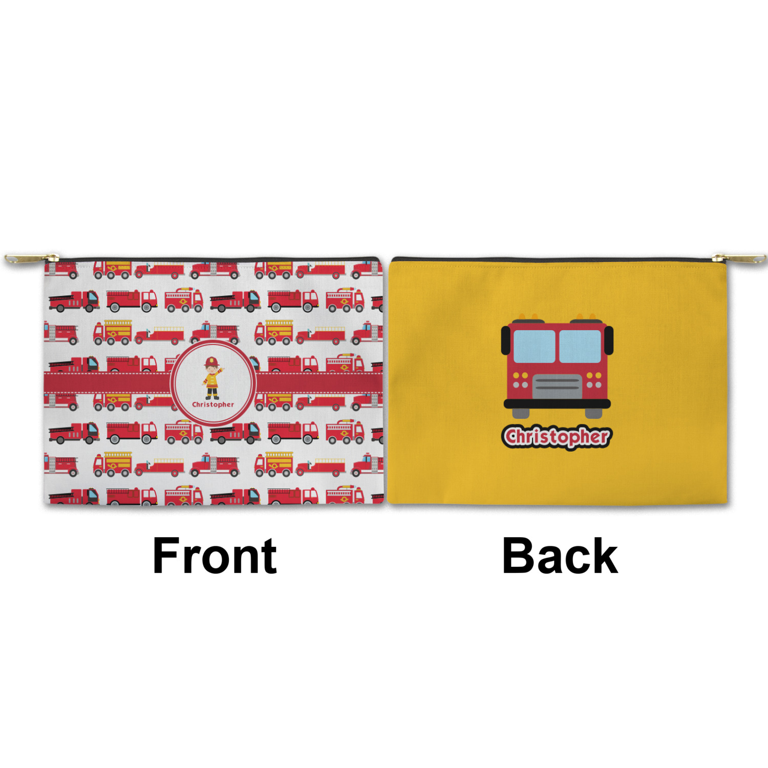 You can design both the front and the back of the pouch - same design, two complementary designs or two totally different designs - the choice is yours! We offer many different personalization styles i.e. name, name & initial, monograms - so the choice to personalize is also yours.