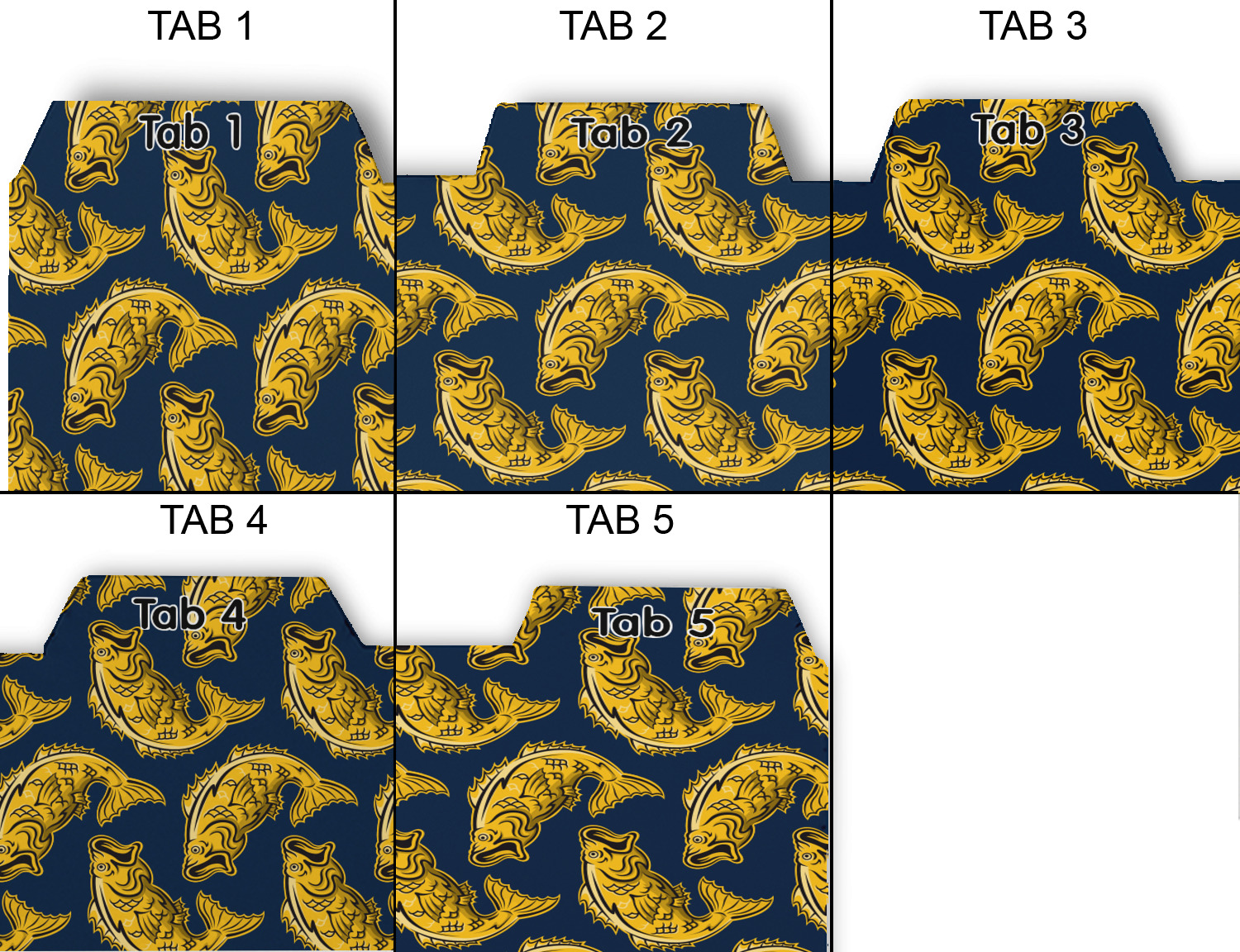 What better way to outfit your new custom personalized binder than a set of custom tab dividers? These can be made to compliment your binder design to take it to the next level!