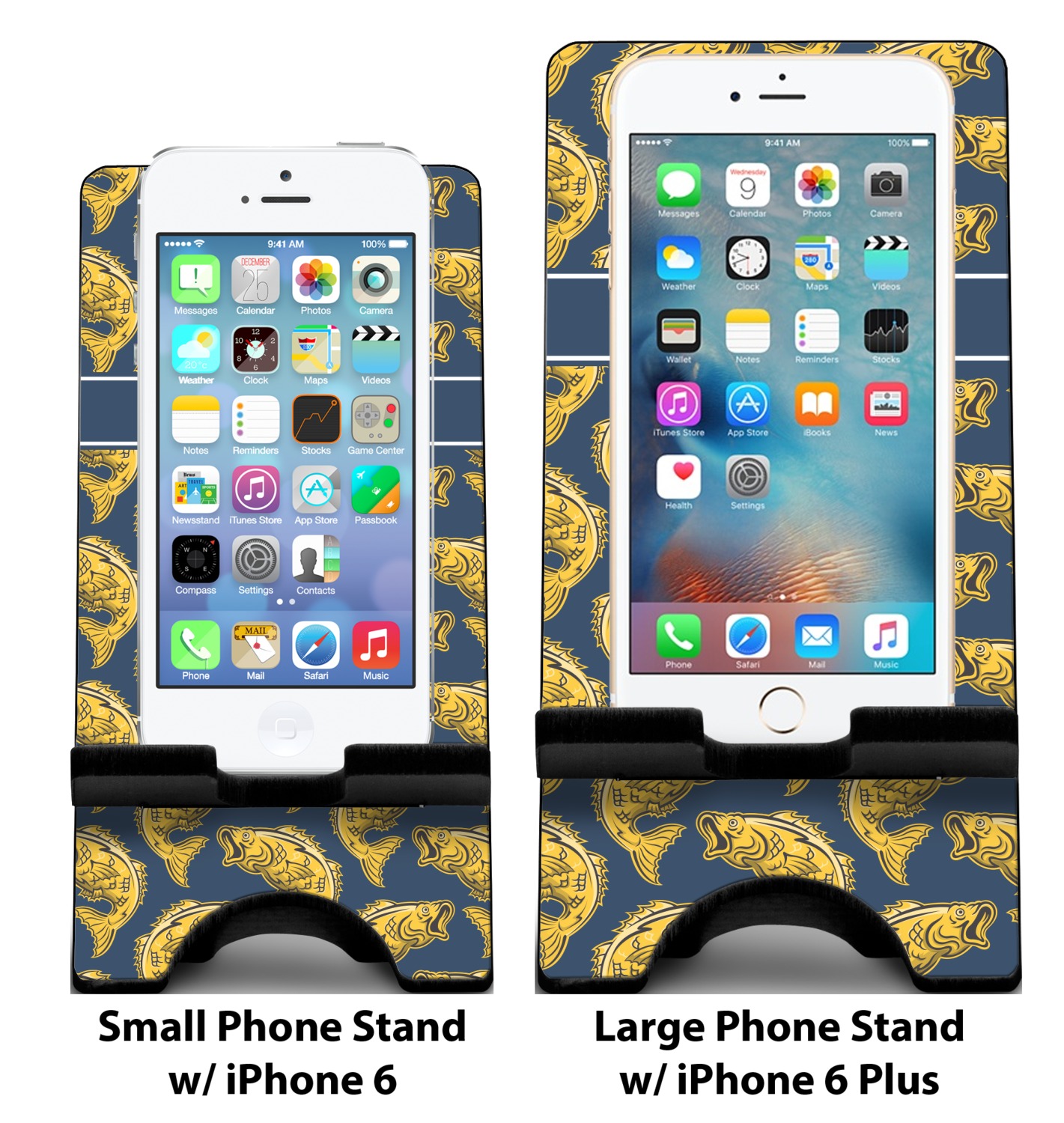 To meet your needs, we offer four variations of this IPhone stand. The backboard of the first version is shaped as a plain, yet sleek rectangle, and is available in two sizes. Our smaller size is approximately 4 by 3.25 by 7 inches, while the larger model is 4 by 3.77 by 8.5 inches. Alongside this model, we also provide you with a more decorative option. The upper part of our second version features a curved edge, for a classy, suave appearance. This phone holder is also sold in two sizes: a smaller version, which is 4 by 3.25 by 7 inches, and our larger model, which is 4 by 3.77 by 8.5 inches. Both models will support large phones, but the larger model is better if you wish to proudly display your personalized design.
