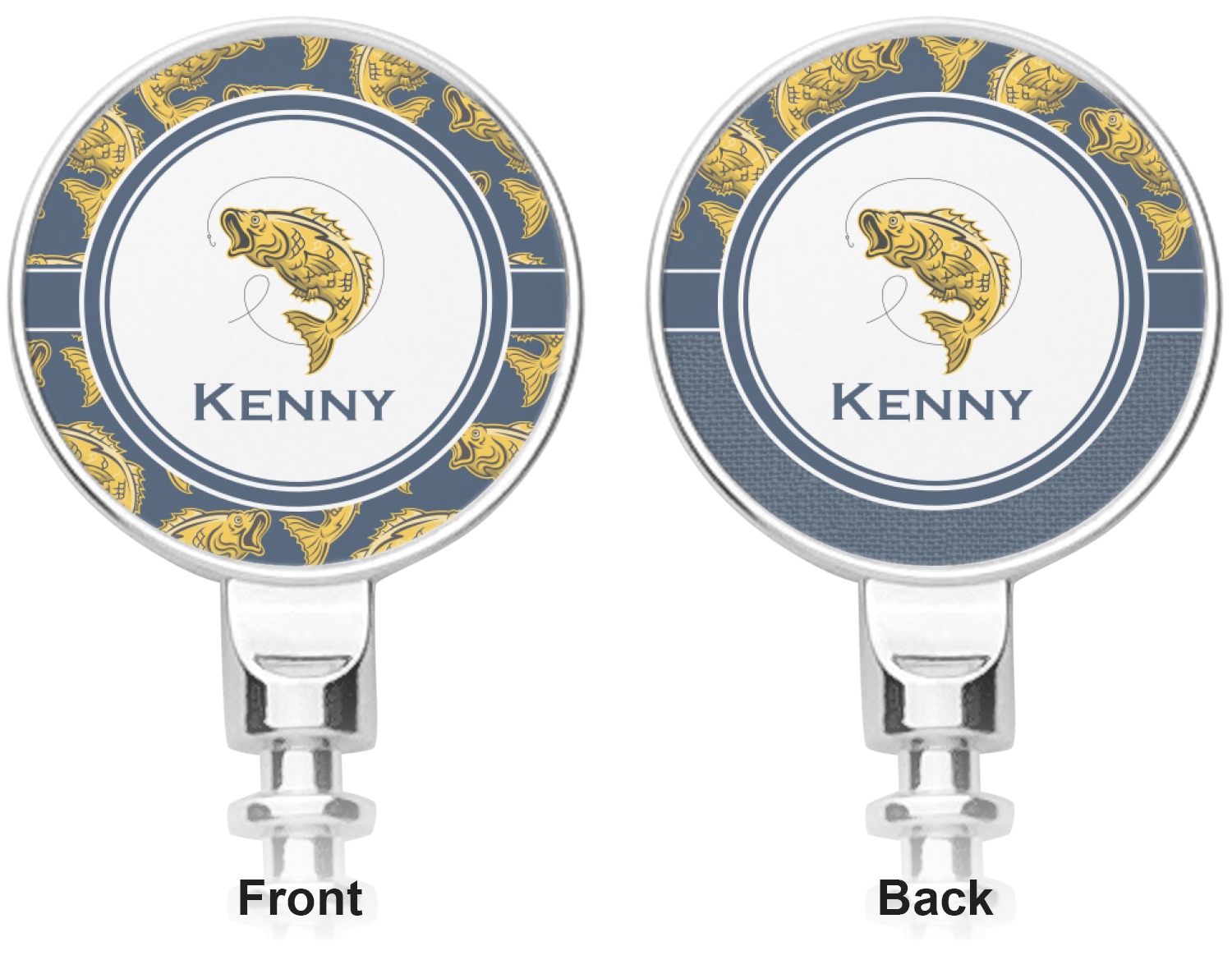 This Fish Design is perfect for all the fishermen in your life. The design is shown with yellow fish on a navy blue background. However, both the background and fish colors can be changed Through the center of the design, there is ribbon with a label. The label contains a fish and hook graphic, but this graphic can be changed to a different fish or other graphic. Just like the fish and background, the ribbon and label color can be customized.