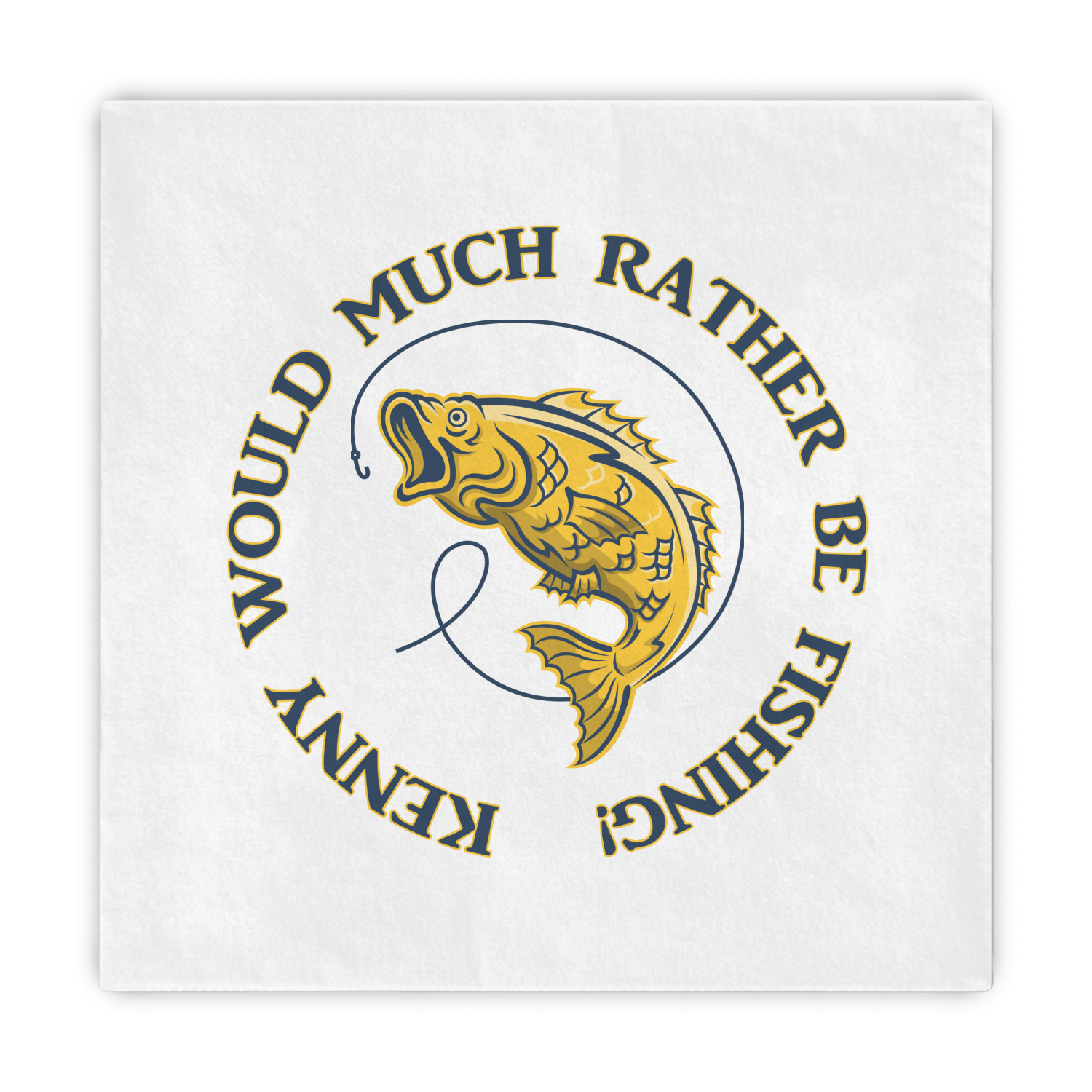 This Fish Design is perfect for all the fishermen in your life. The design is shown with yellow fish on a navy blue background. However, both the background and fish colors can be changed Through the center of the design, there is ribbon with a label. The label contains a fish and hook graphic, but this graphic can be changed to a different fish or other graphic. Just like the fish and background, the ribbon and label color can be customized.