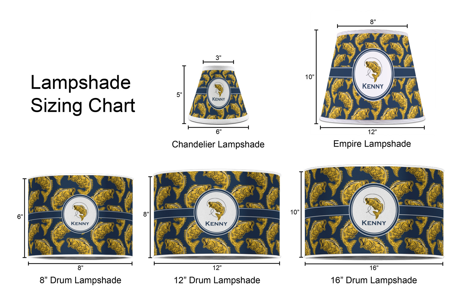 Our customized lamp shades also come in 3 different sizes: 8", 12" and 16", measuring at 8" in diameter by 6" tall, 12" in diameter by 8" tall, and 16" in diameter by 10" tall, respectively.