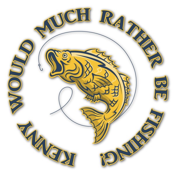 This Fish Design is perfect for all the fishermen in your life. The design is shown with yellow fish on a navy blue background. However, both the background and fish colors can be changed Through the center of the design, there is ribbon with a label. The label contains a fish and hook graphic, but this graphic can be changed to a different fish or other graphic. Just like the fish and background, the ribbon and label color can be customized.