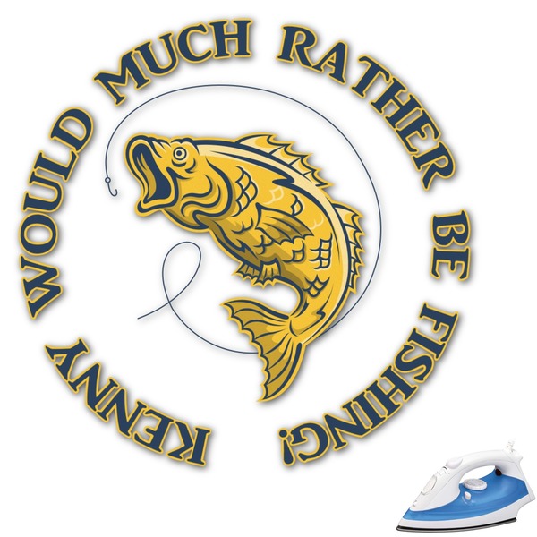 This Fish Design is perfect for all the fishermen in your life. The design is shown with yellow fish on a navy blue background. However, both the background and fish colors can be changed Through the center of the design, there is ribbon with a label. The label contains a fish and hook graphic, but this graphic can be changed to a different fish or other graphic. Just like the fish and background, the ribbon and label color can be customized.