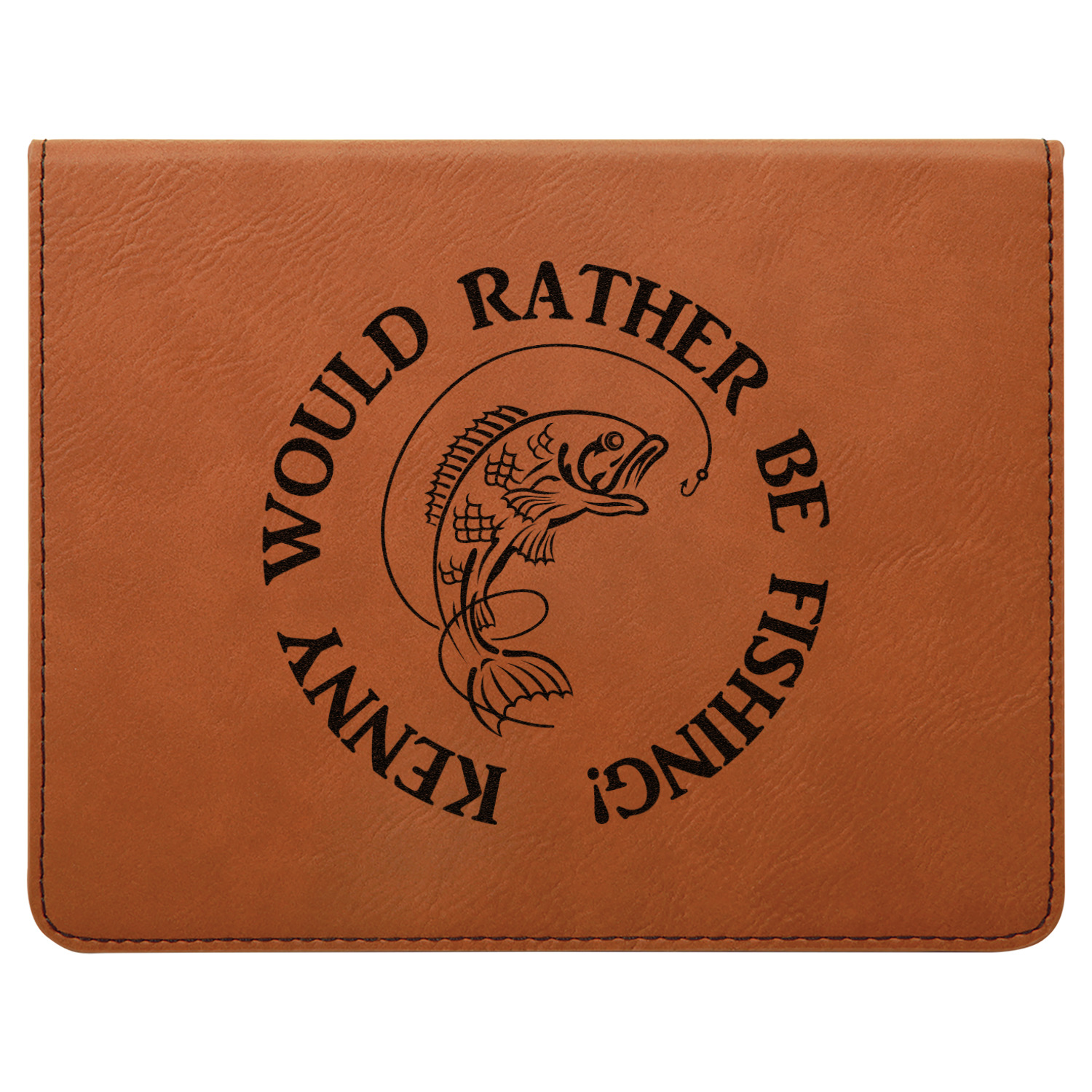This set includes a wine stopper, pourer, drip ring, and a corkscrew! The exterior of the box is a gorgeous, cognac-brown leatherette, while the interior is covered in a black, velvety material. Four foam indentations, unique to the shape of the wine tool, are found at the bottom half of the box's interior. The tools fit snugly into each of their designated spots, and the foam material helps to protect the integrity of your tools. Each of the wine gadgets features a bamboo accent, with the location and style depending on the tool itself. We laser engrave your personalized design onto the lid of the box, which easily flips open and is secured closed by a small magnet. The wine accessories box measures at 7 by 5.5 inches in total.