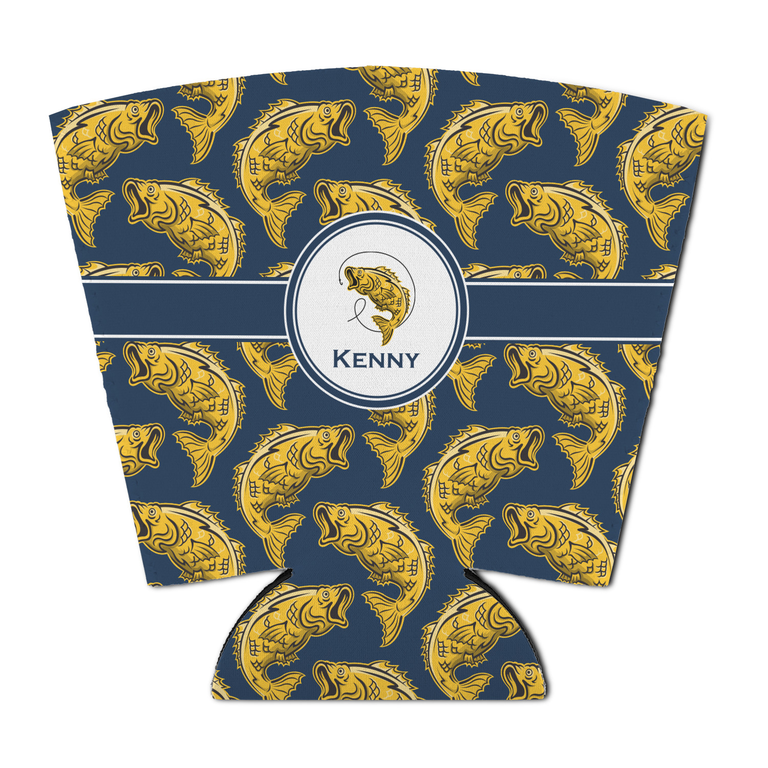 This Fish Design is perfect for all the fishermen in your life. The design is shown with yellow fish on a navy blue background. However, both the background and fish colors can be changed Through the center of the design, there is ribbon with a label. The label contains a fish and hook graphic, but this graphic can be changed to a different fish or other graphic. Just like the fish and background, the ribbon and label color can be customized.