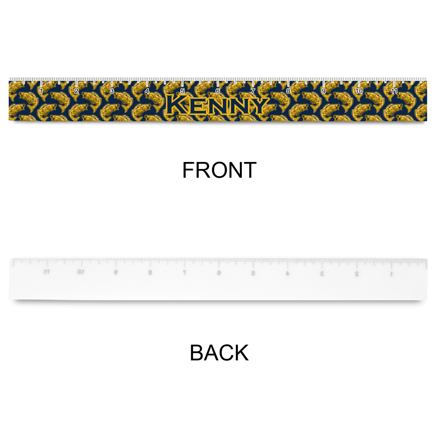 This Fish Design is perfect for all the fishermen in your life. The design is shown with yellow fish on a navy blue background. However, both the background and fish colors can be changed Through the center of the design, there is ribbon with a label. The label contains a fish and hook graphic, but this graphic can be changed to a different fish or other graphic. Just like the fish and background, the ribbon and label color can be customized.