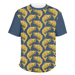 This Fish Design is perfect for all the fishermen in your life. The design is shown with yellow fish on a navy blue background. However, both the background and fish colors can be changed Through the center of the design, there is ribbon with a label. The label contains a fish and hook graphic, but this graphic can be changed to a different fish or other graphic. Just like the fish and background, the ribbon and label color can be customized.